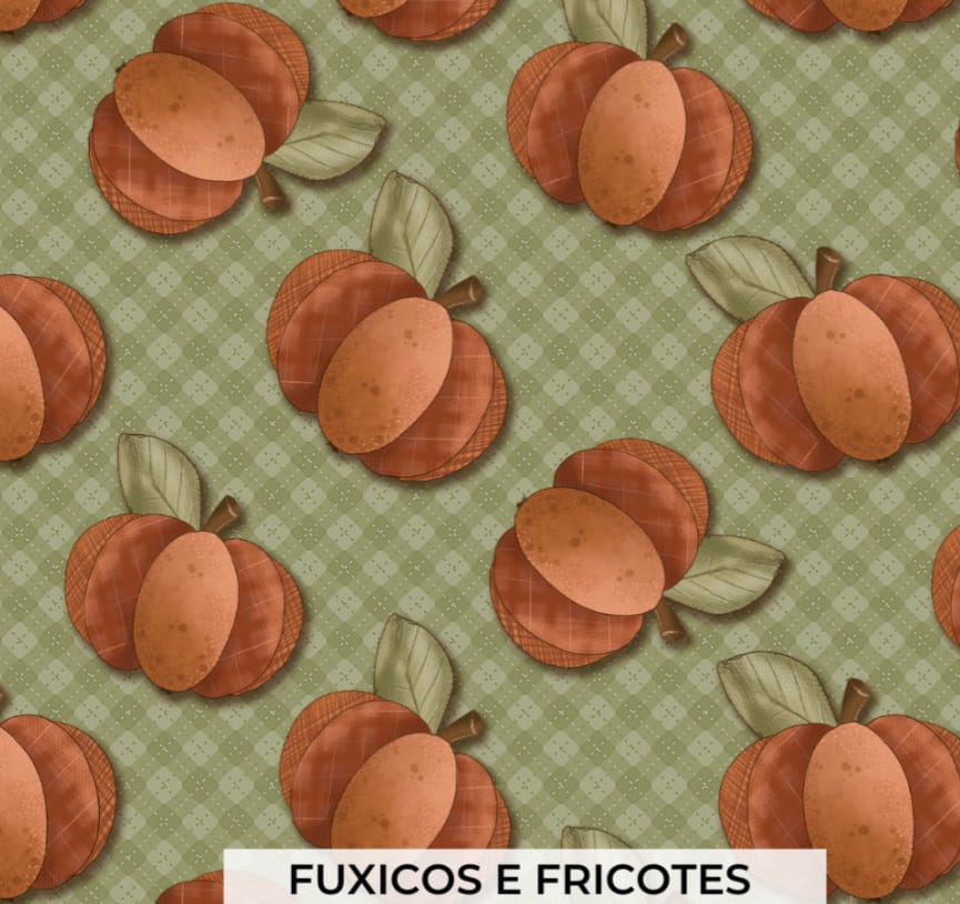 Tricoline Fuxicos e Fricotes 100% algodão com abóboras em fundo verde.