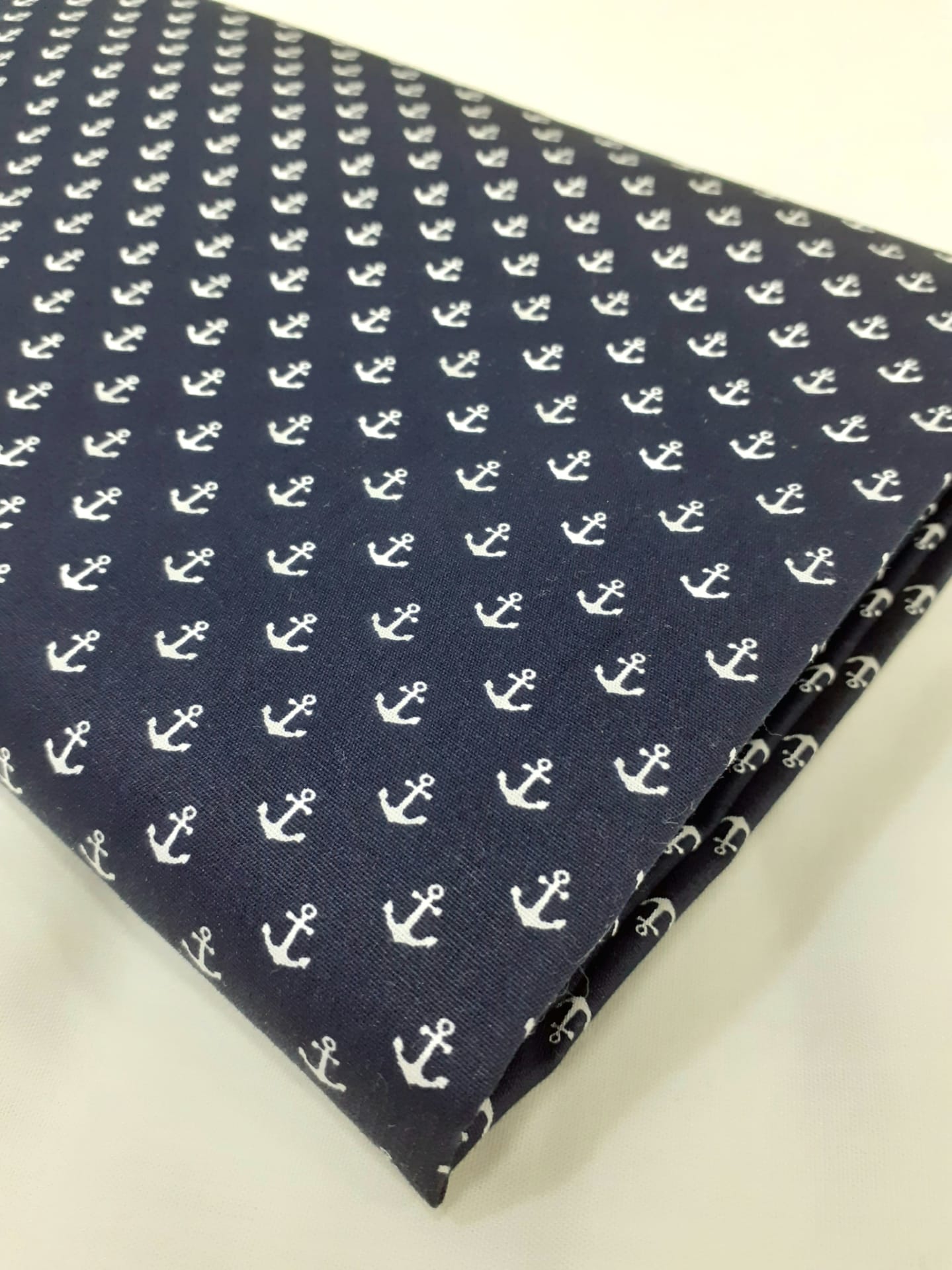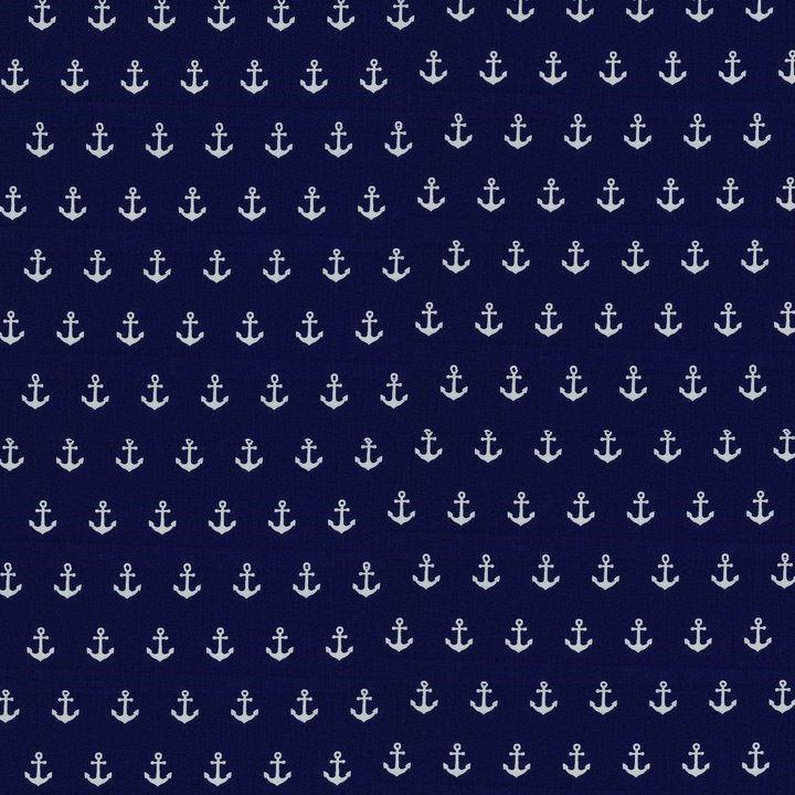 Tecido Poppy Fabrics 100% algodão com âncoras pequenas brancas em fundo azul escuro