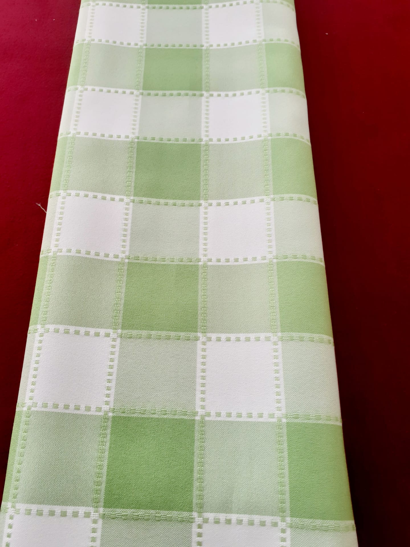 Atoalhado de mesa em verde 0,04 € Partilhar Adicionar Contactar Tecido 100% Poliester com quadrados brancos e verde. 1.50 de largo Corte mínimo 20cm