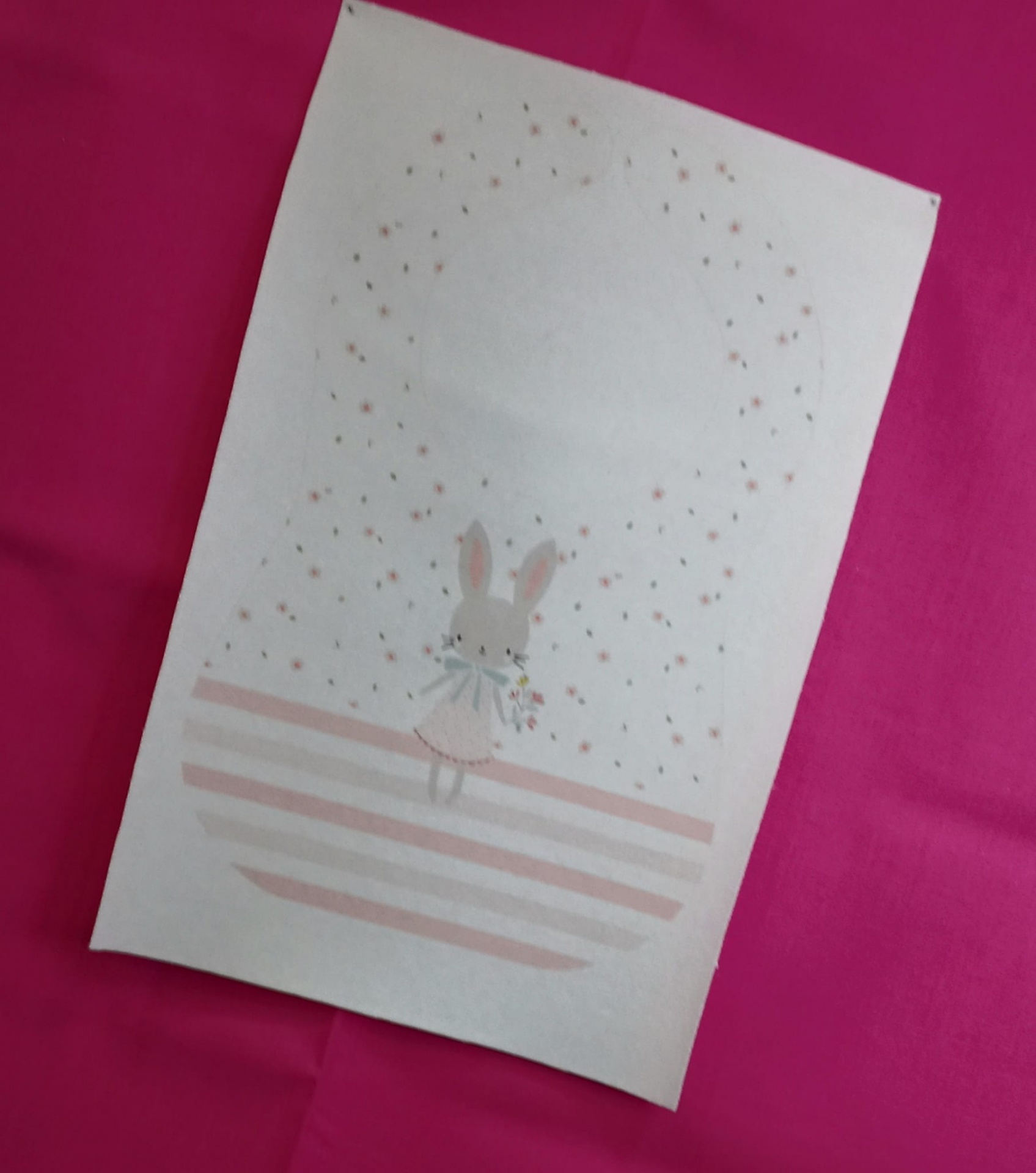 Babete 100% Algodão, revestido em PVC, impermeável com coelhinha e flores.