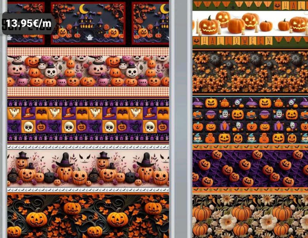Tricoline 100% algodão com 8 barras todas elas diferentes com motivos de Halloween ( dia das bruxas ).