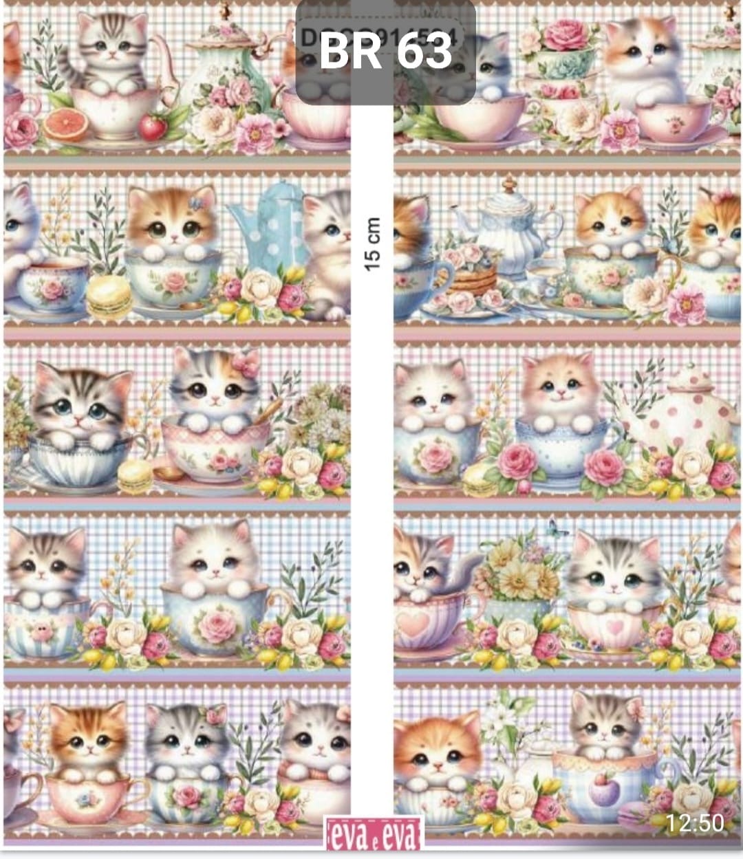 Tecido Eva e Eva 100% algodão com 10 barras todas elas diferentes com gatos.
