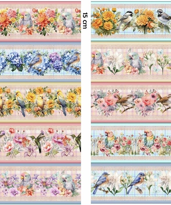 Tecido 100% algodão com 10 barras todas elas diferentes com aves.