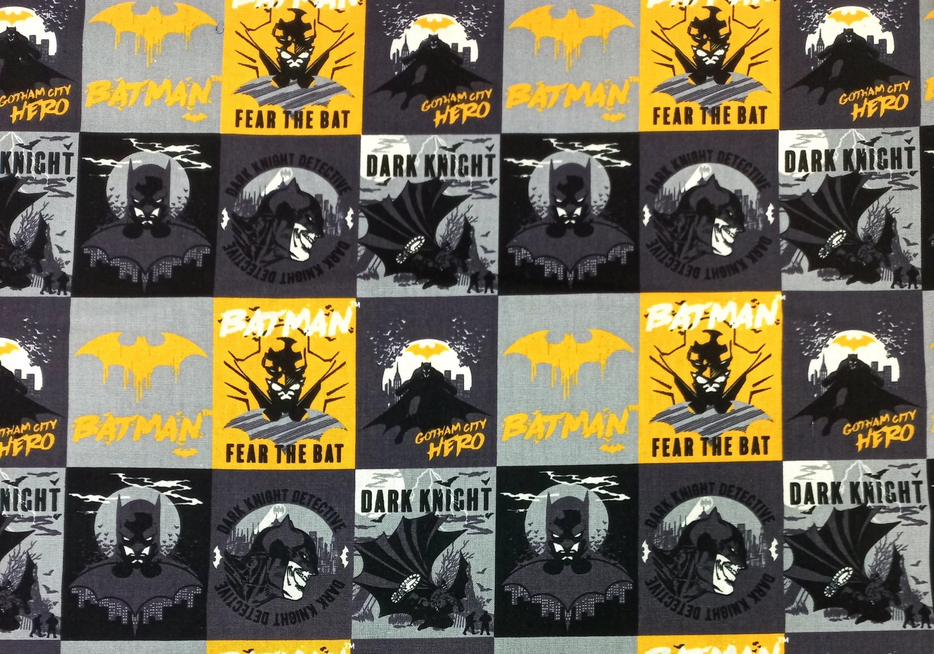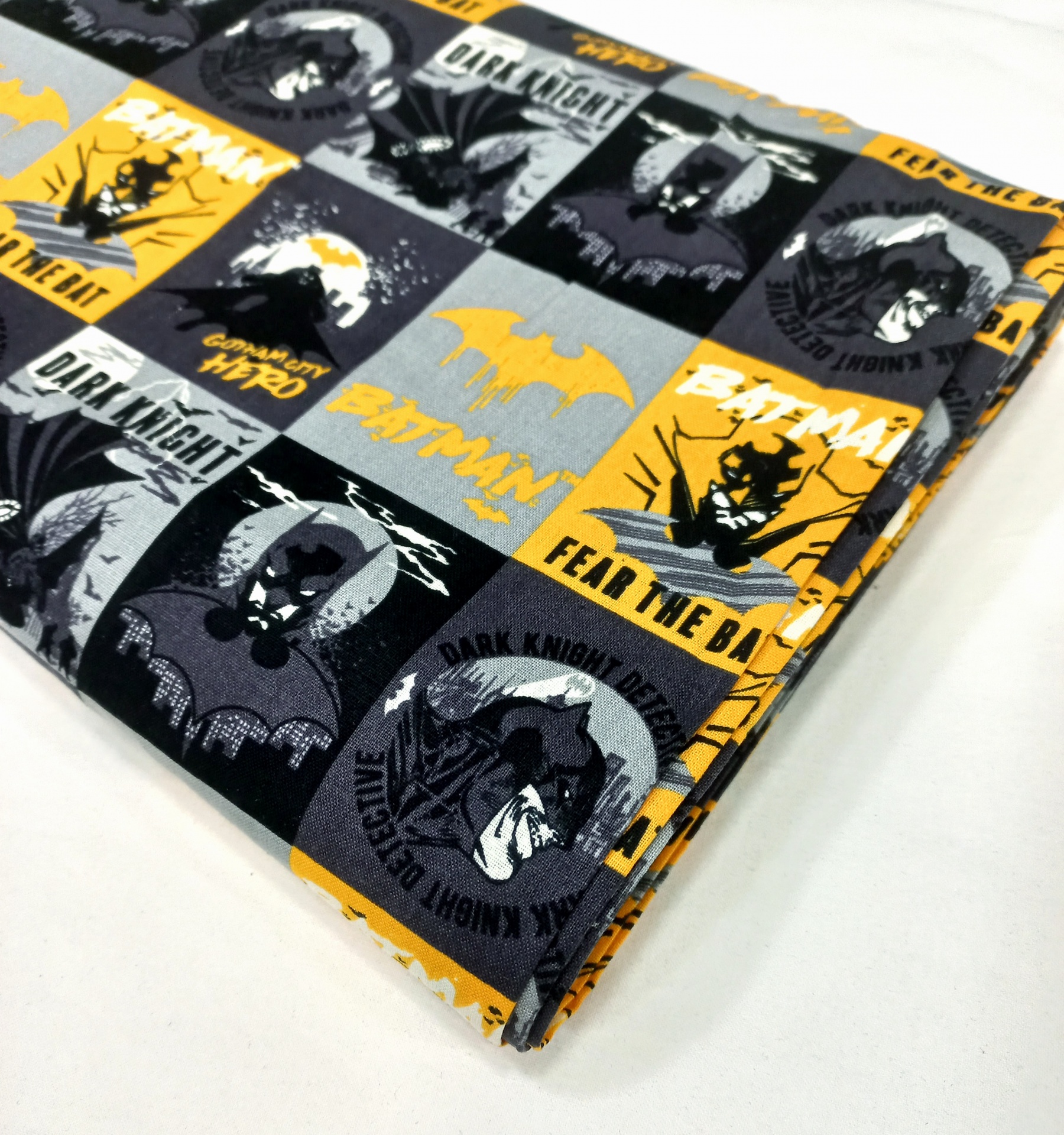 Popeline 100% algodão com motivos do Batman em fundo preto.