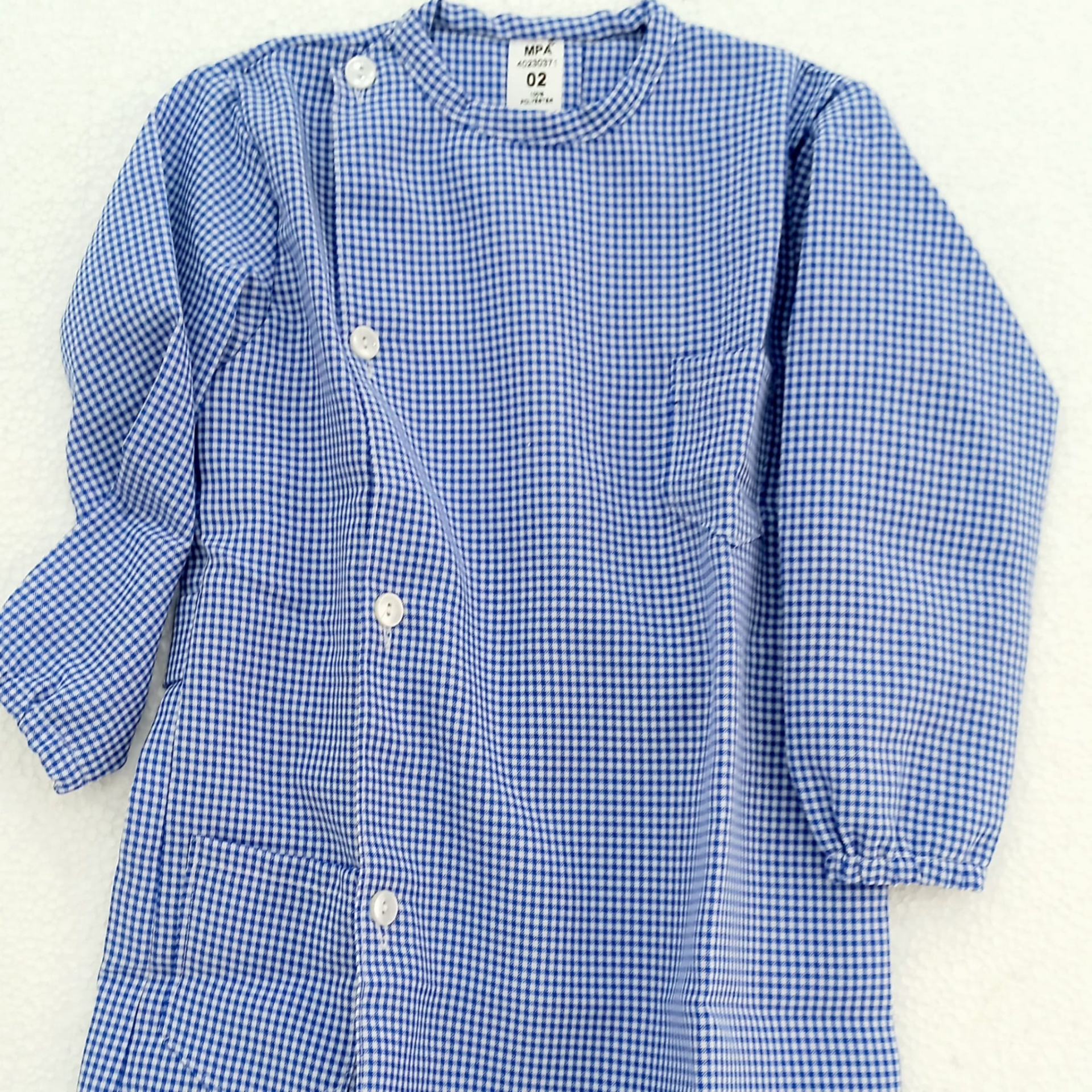 Bibe azul 10,00 € Partilhar Tamanho 2 3 4 5 6 7 Adicionar Contactar 1 unidades em stock Bibe azul de manga comprida com botões à frente