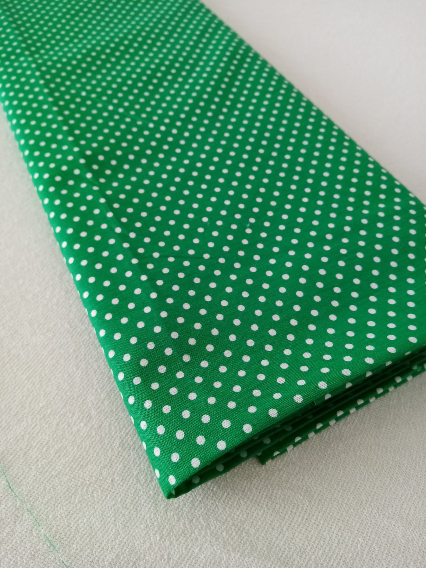 Bolinhas Brancas em Fundo Verde 0,08 € Partilhar Adicionar Contactar Tecido 50% algodão,50% poliester com bolinhas brancas em fundo verde. 1.50m de largo. Corte mínimo 20cm