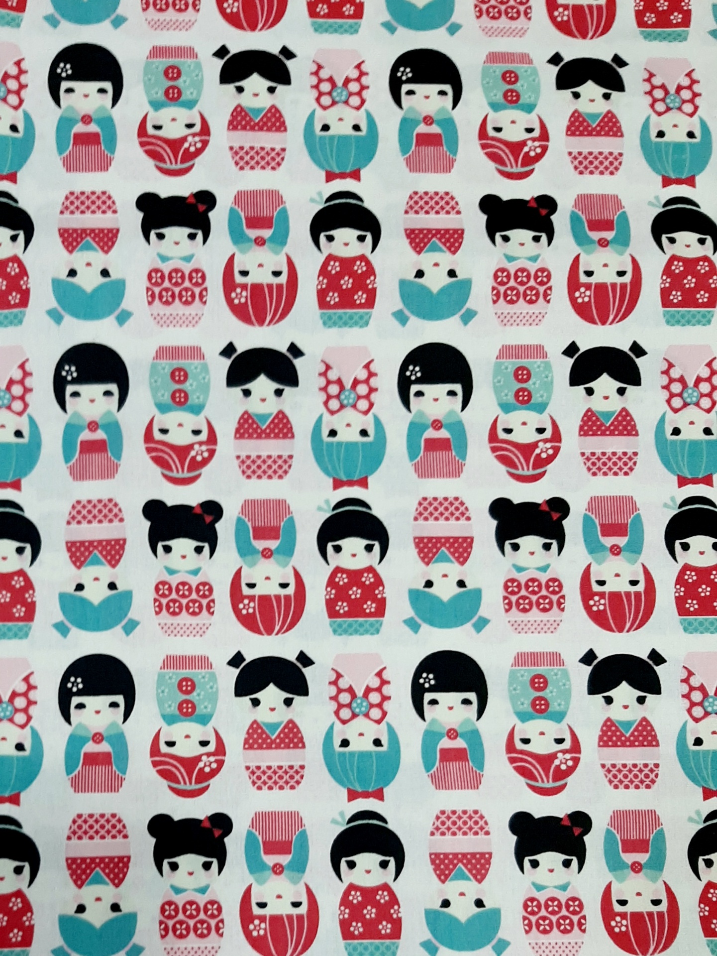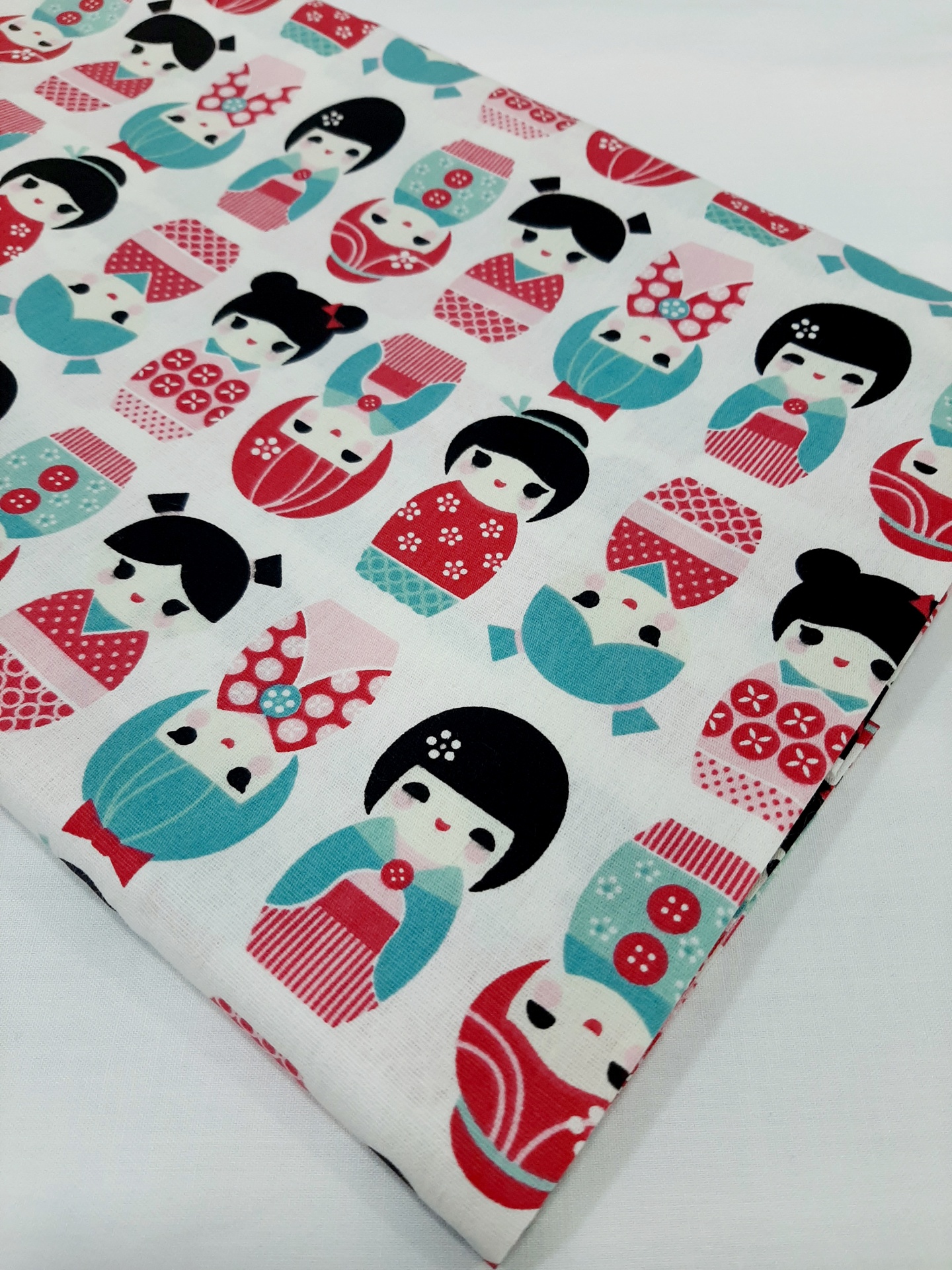 Tricoline Eva e Eva 100% algodão com bonequinhas em fundo branco