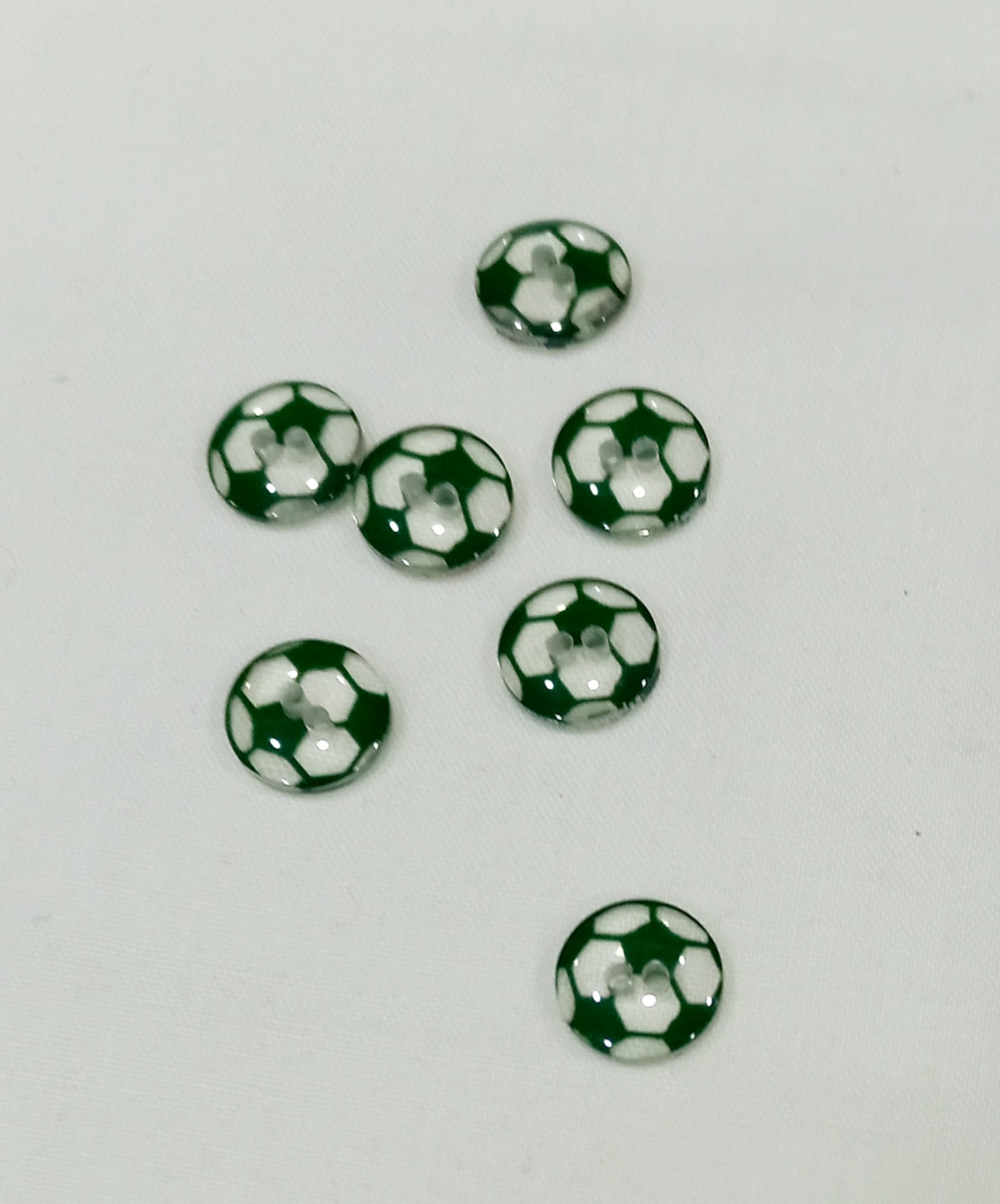 Botão Bola de Futebol Verde 12mm 0,45 € Partilhar Adicionar Contactar 65 unidades em stock Botão redondo com brilho e dois furos , verde e transparente em forma de bola de Futebol. 12mm