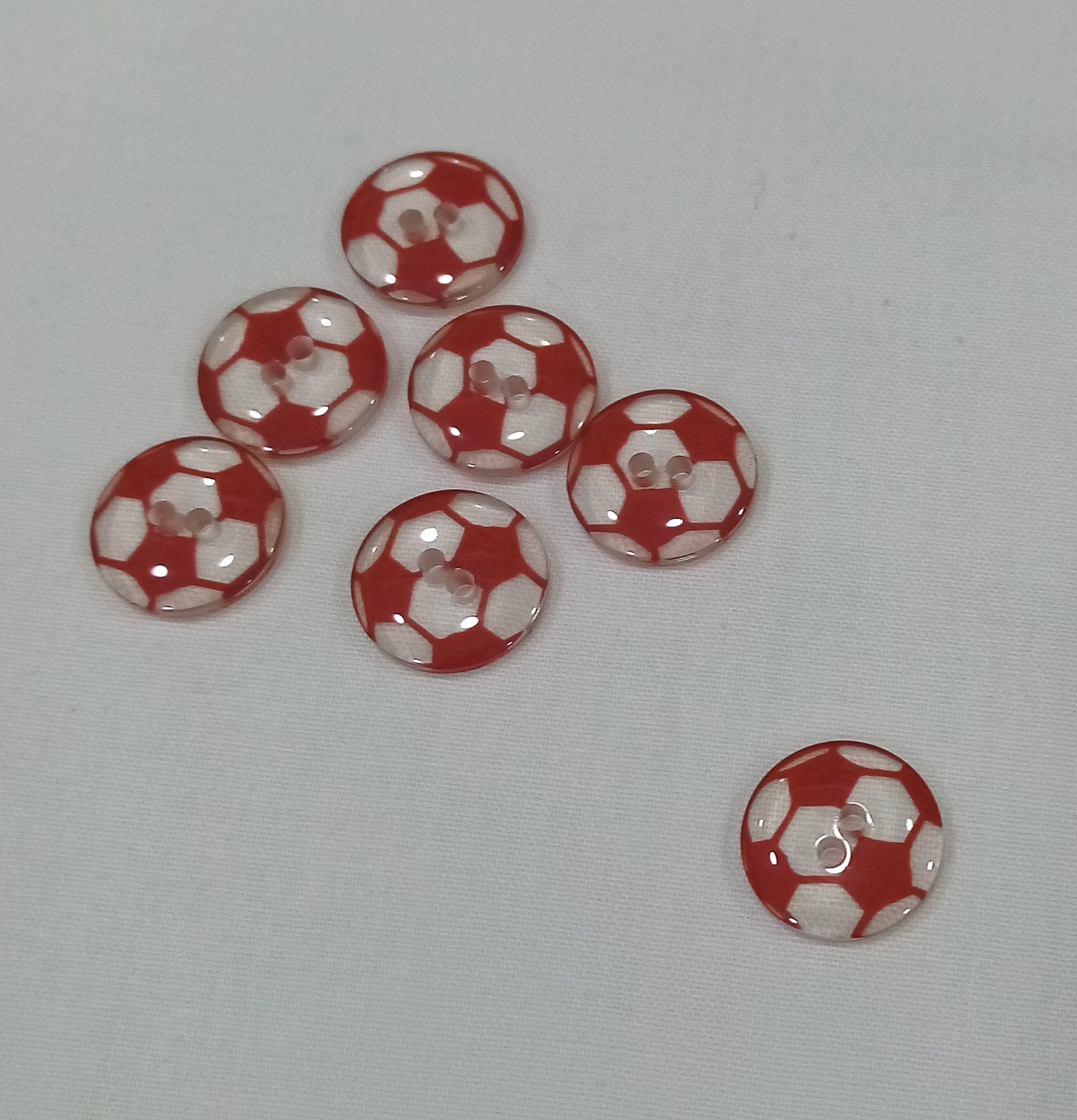 Botão Bola de Futebol Vermelho 15mm 0,55 € Partilhar Adicionar Contactar 49 unidades em stock Botão redondo com brilho e dois furos , vermelho e transparente em forma de bola de Futebol. 15mm