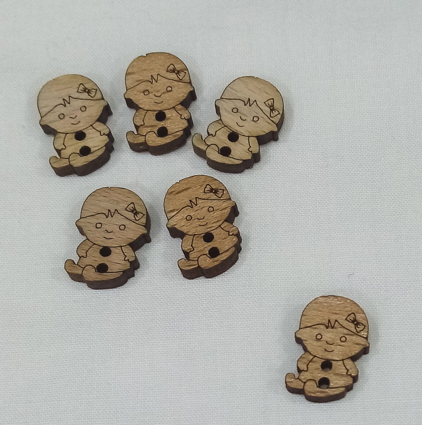 Botão de Madeira em forma de Menina 0,65 € Partilhar Adicionar Contactar 7 unidades em stock Botão com dois furos em madeira de oliveira na forma de menina. 18mm