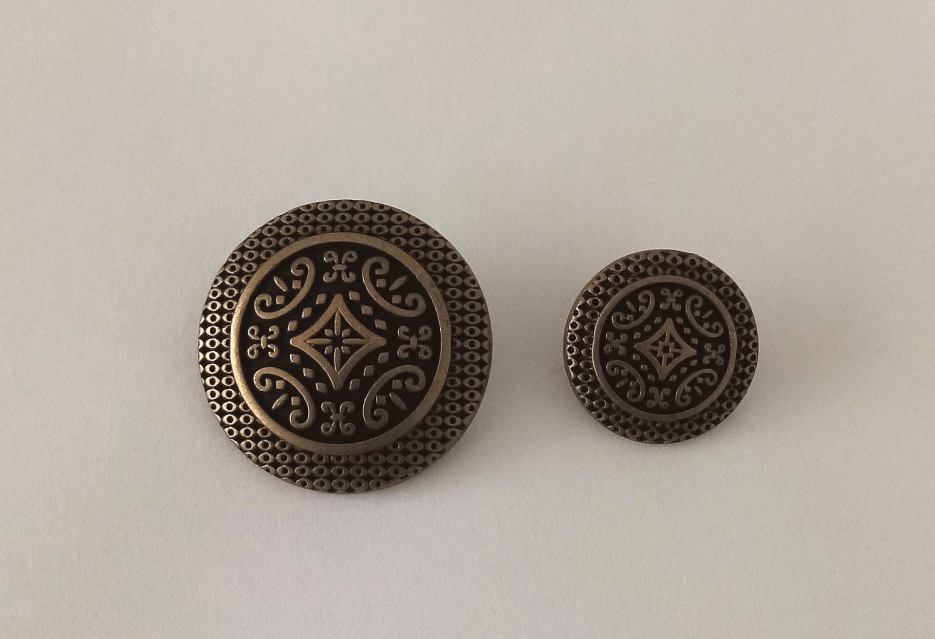 Botão de Metal 16027 0,55 € Partilhar Diâmetro 15mm 22mm Adicionar Contactar 14 unidades em stock Botão em metal com pé , em ouro velho. Ideal para casacos, saias, jaquetas etc. 15mm 22mm Tags CasacossaiasJaquetas