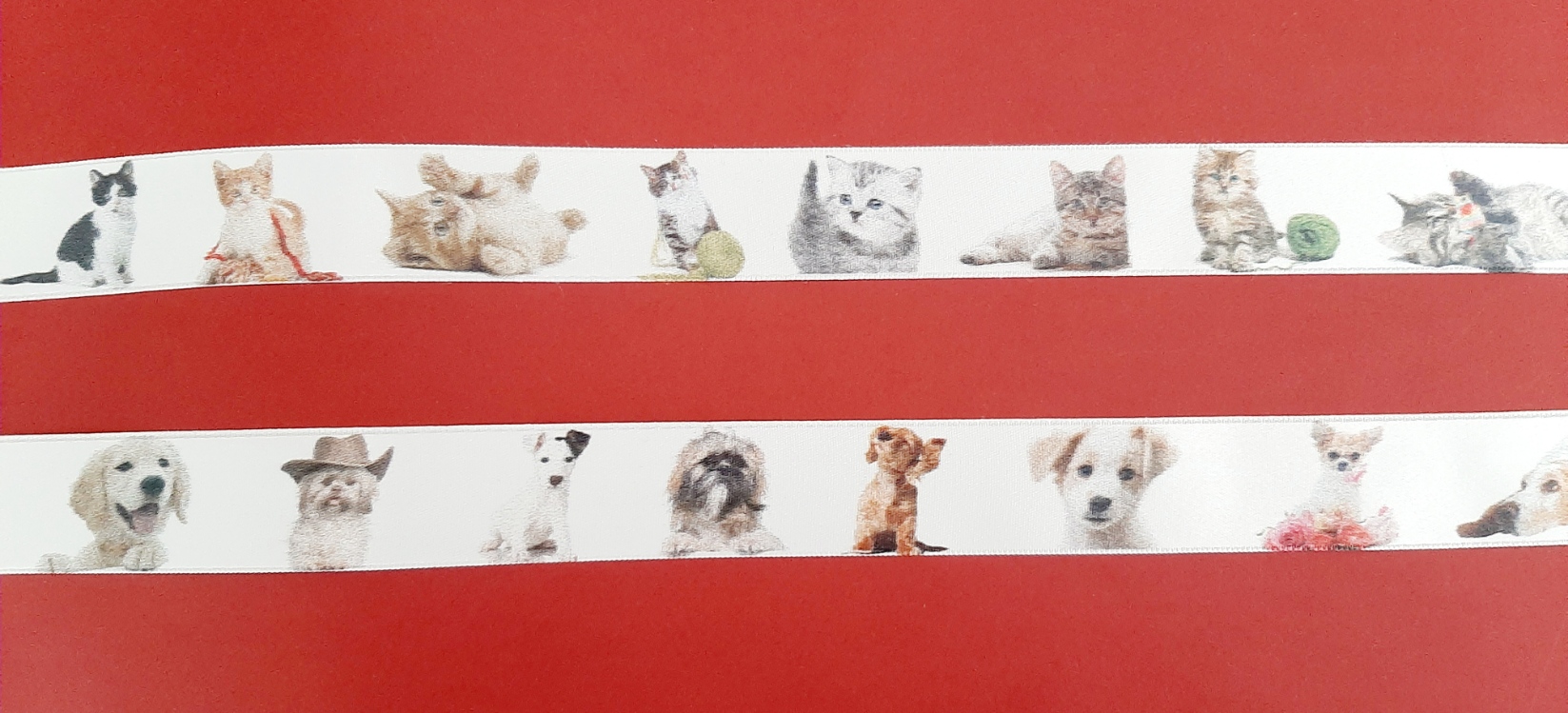 Cães e Gatos 0,02 € Partilhar Padrão Cães Gatos Adicionar Contactar 100 unidades em stock Fita de cetim com motivos de cães ou gatos em fundo branco 26mm Corte mínimo de 20cm