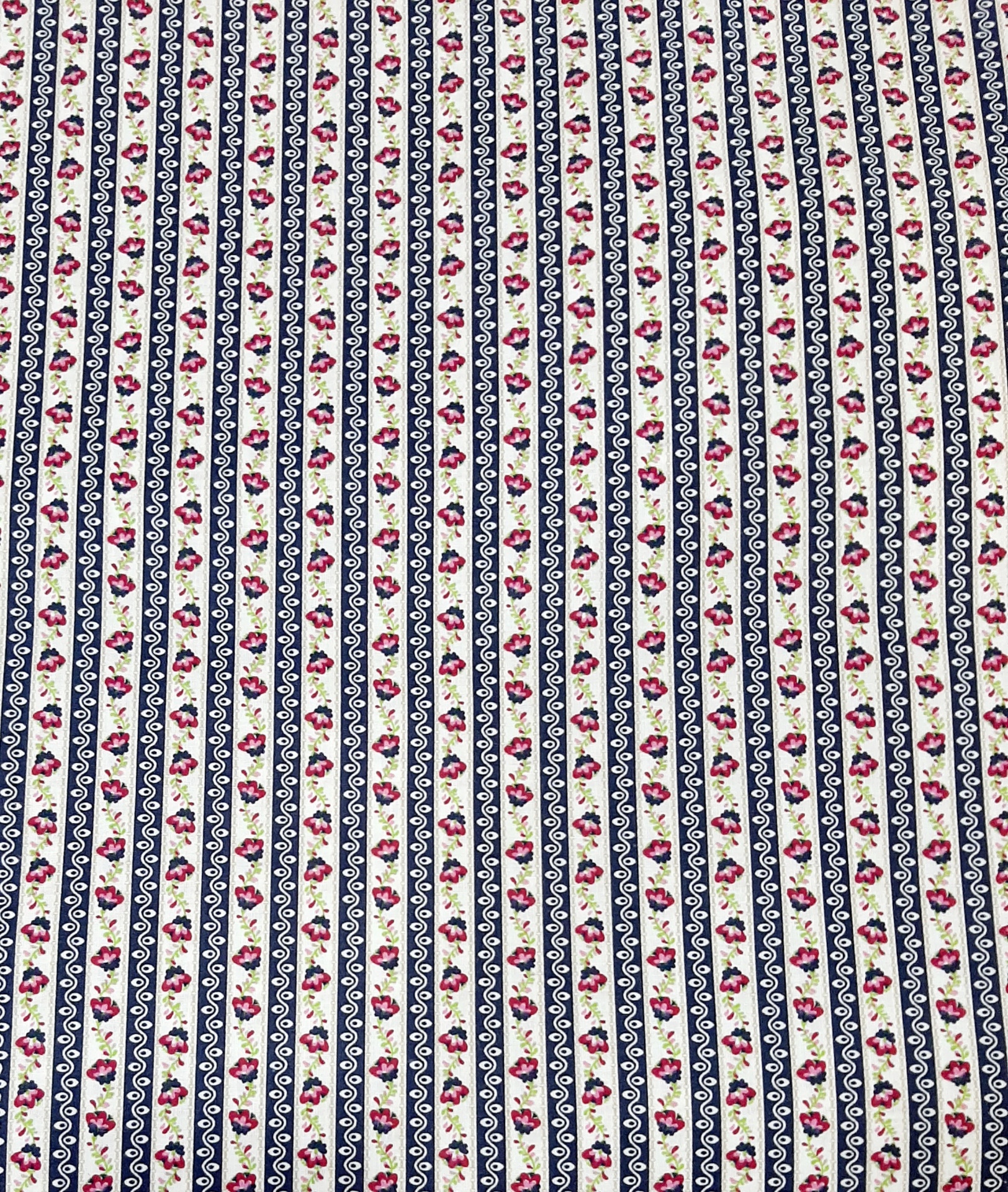 Chita 52% algodão 48% poliester com flores rosa e riscas azuis escuras