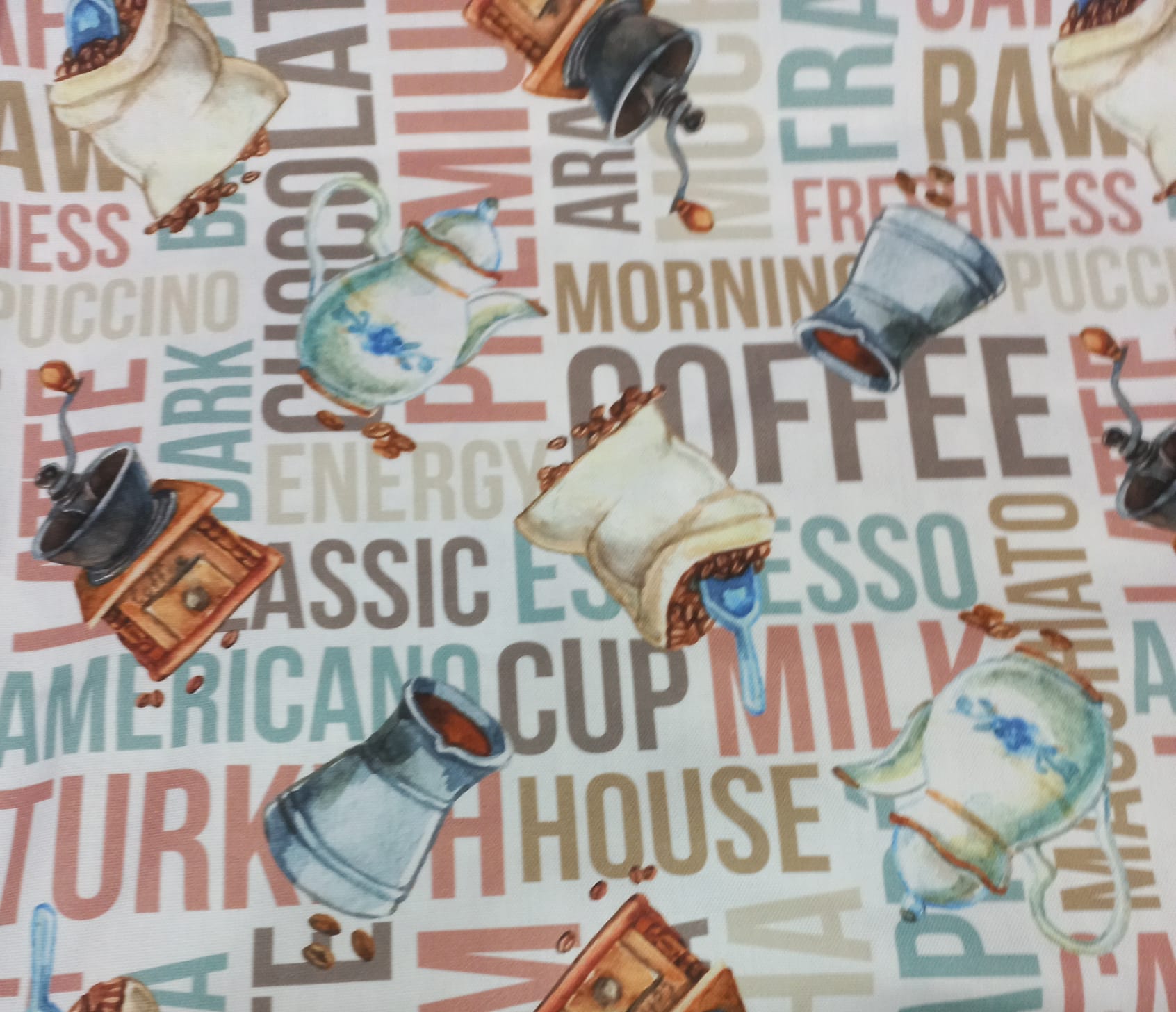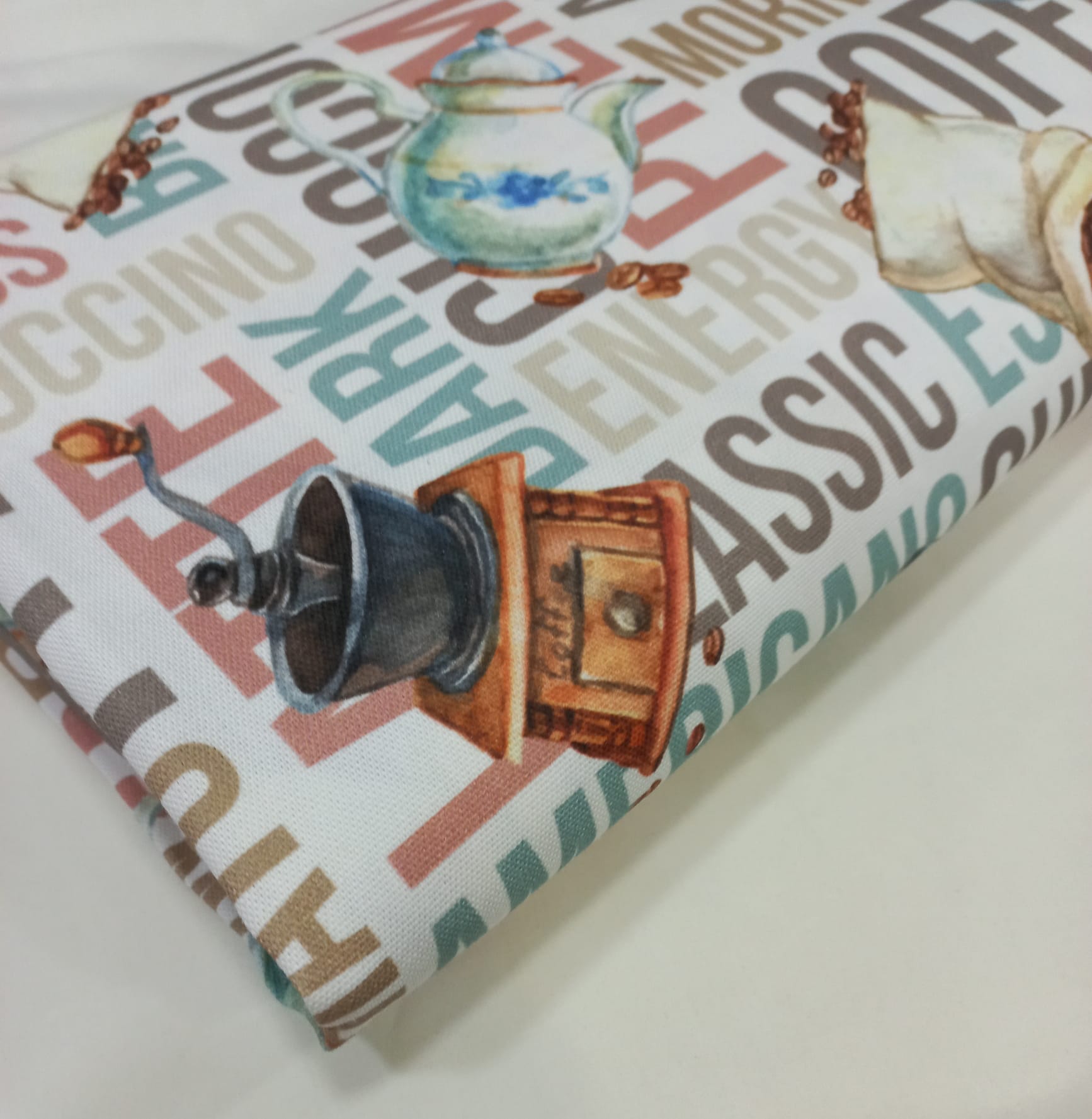 Coffee Express 0,15 € Partilhar Adicionar Contactar Panamá 100% poliester com moinhos, sacos de café, bules e cafeteiras em fundo branco. 2.80m de largo Ideal para toalhas de mesa, cortinados, aventais,caminhos de mesa, individuais, sacos e outros artigos de decoração Corte mínimo 20cm