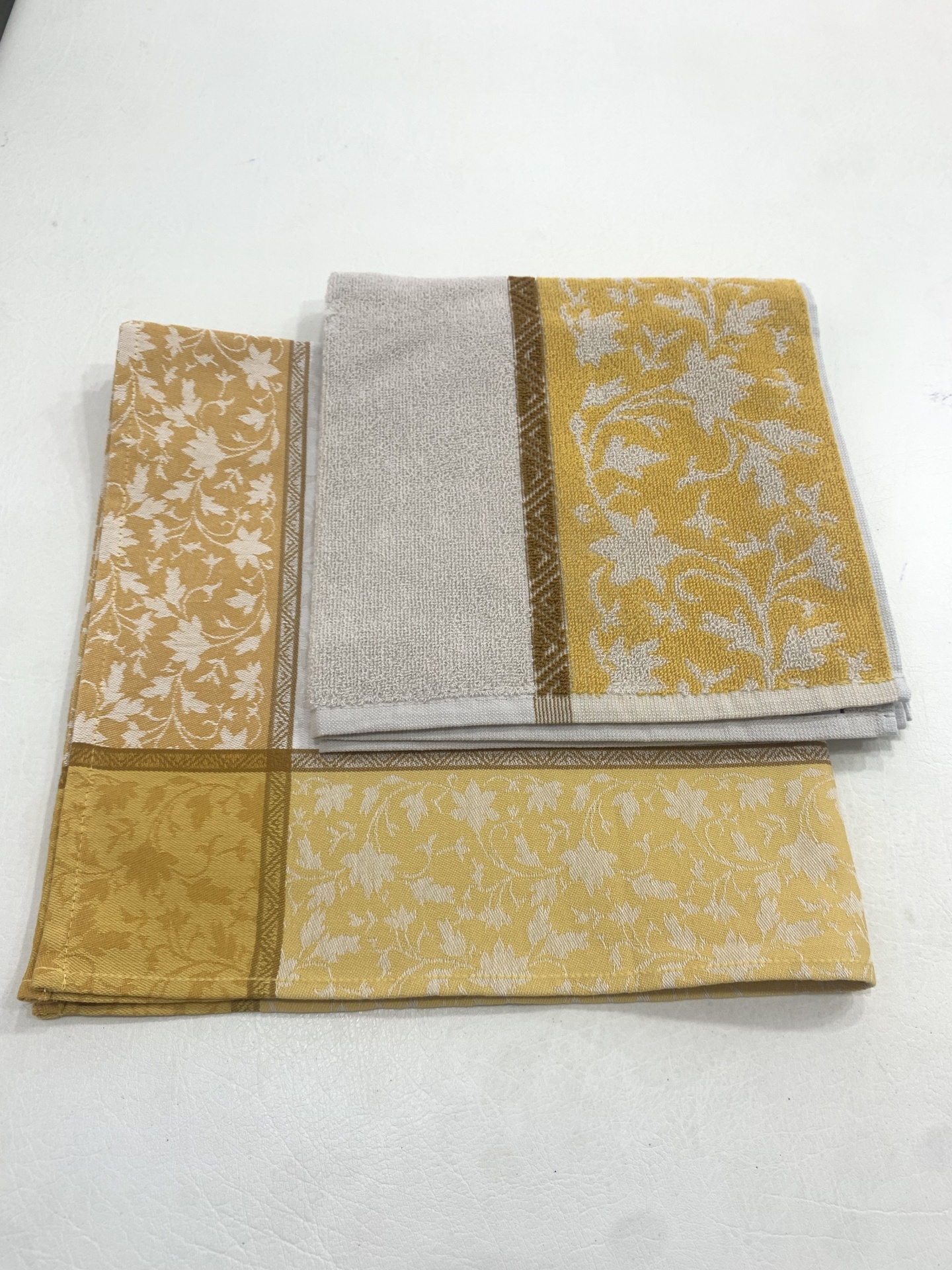 Constituído por 1 pano de louça e 1 pano de mãos turco.