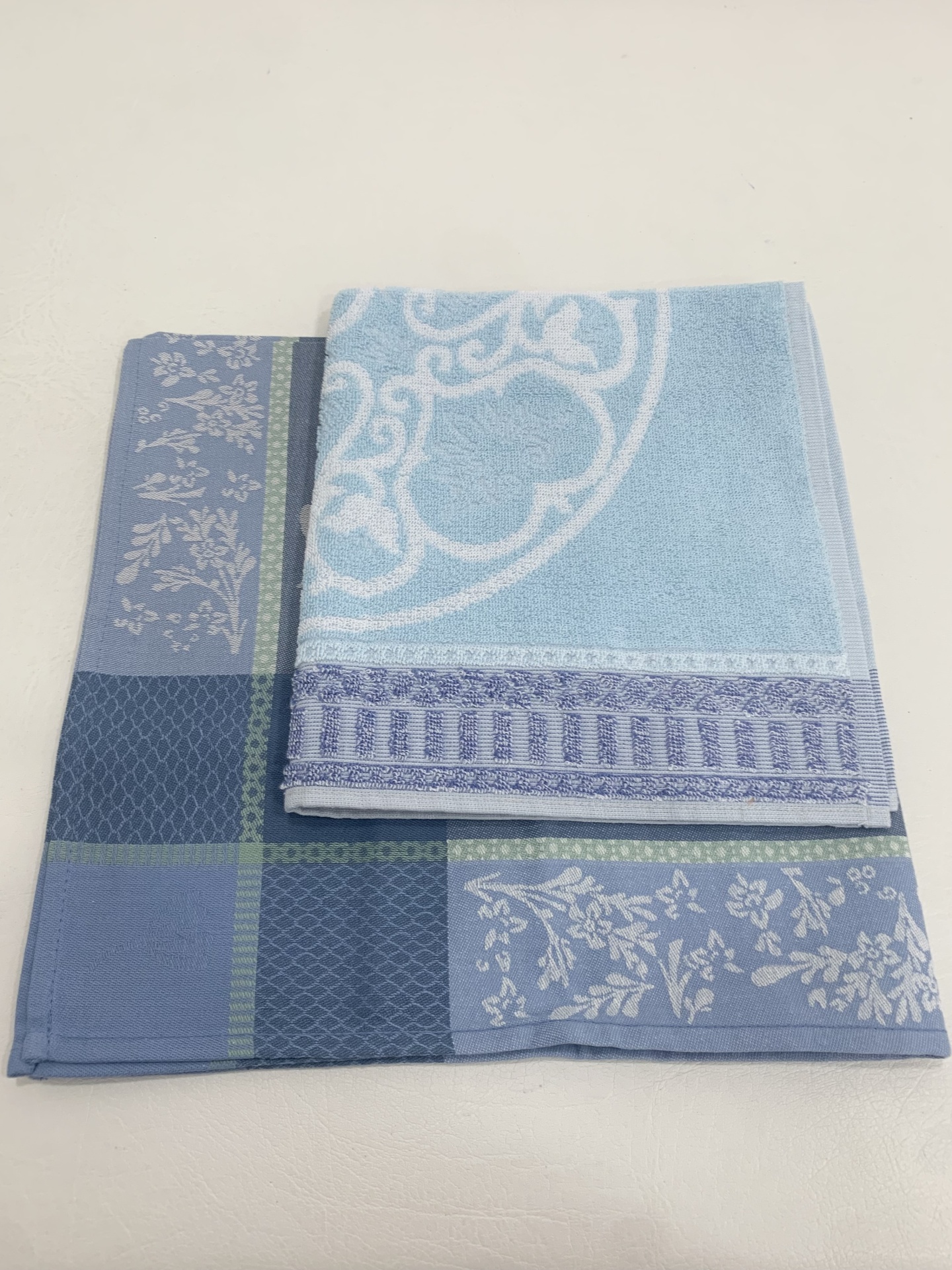 Constituído por 1 pano de louça e 1 pano de mãos turco.