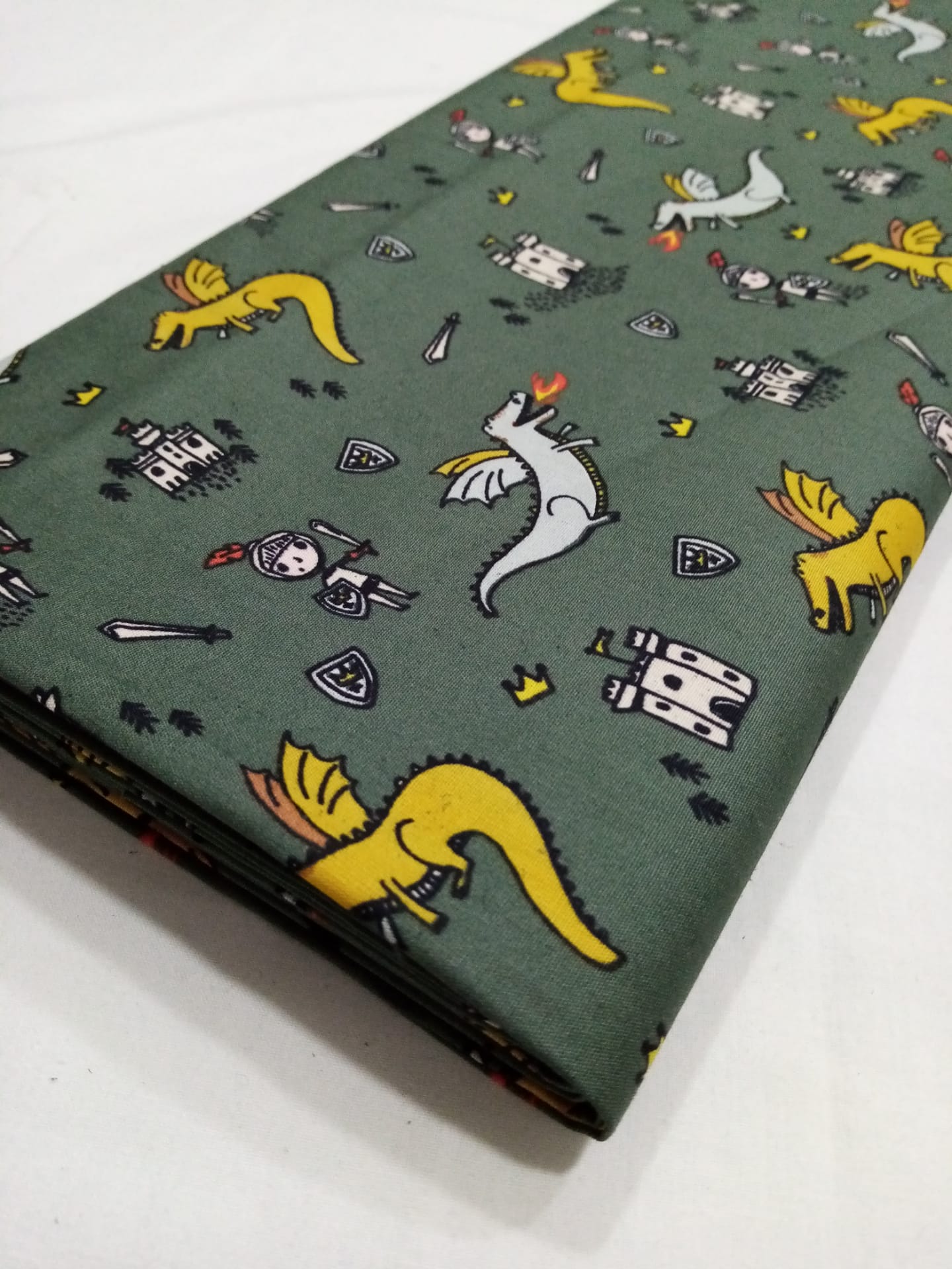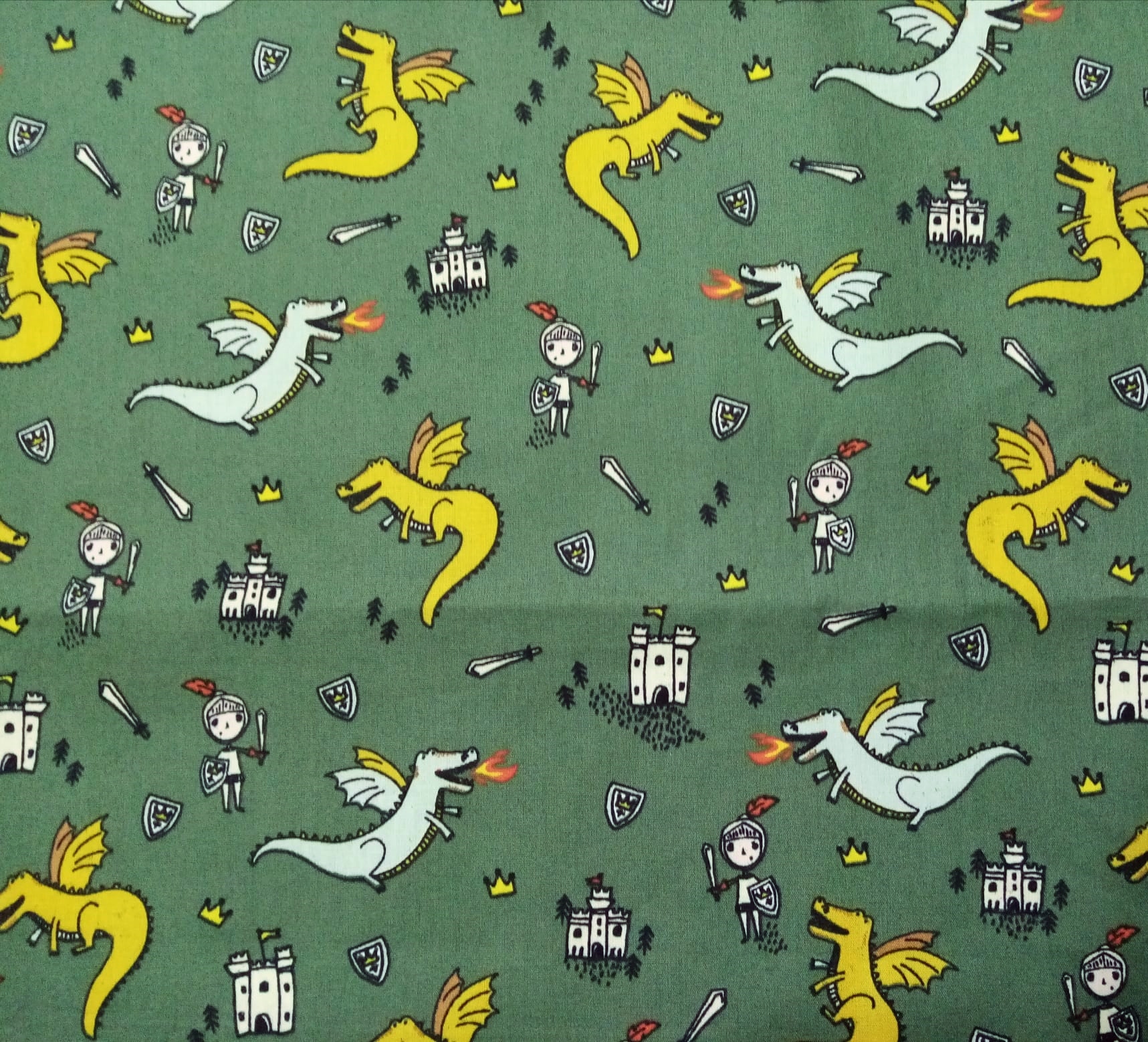 Tecido Poppy Fabrics 100% algodão com Dragões em fundo verde