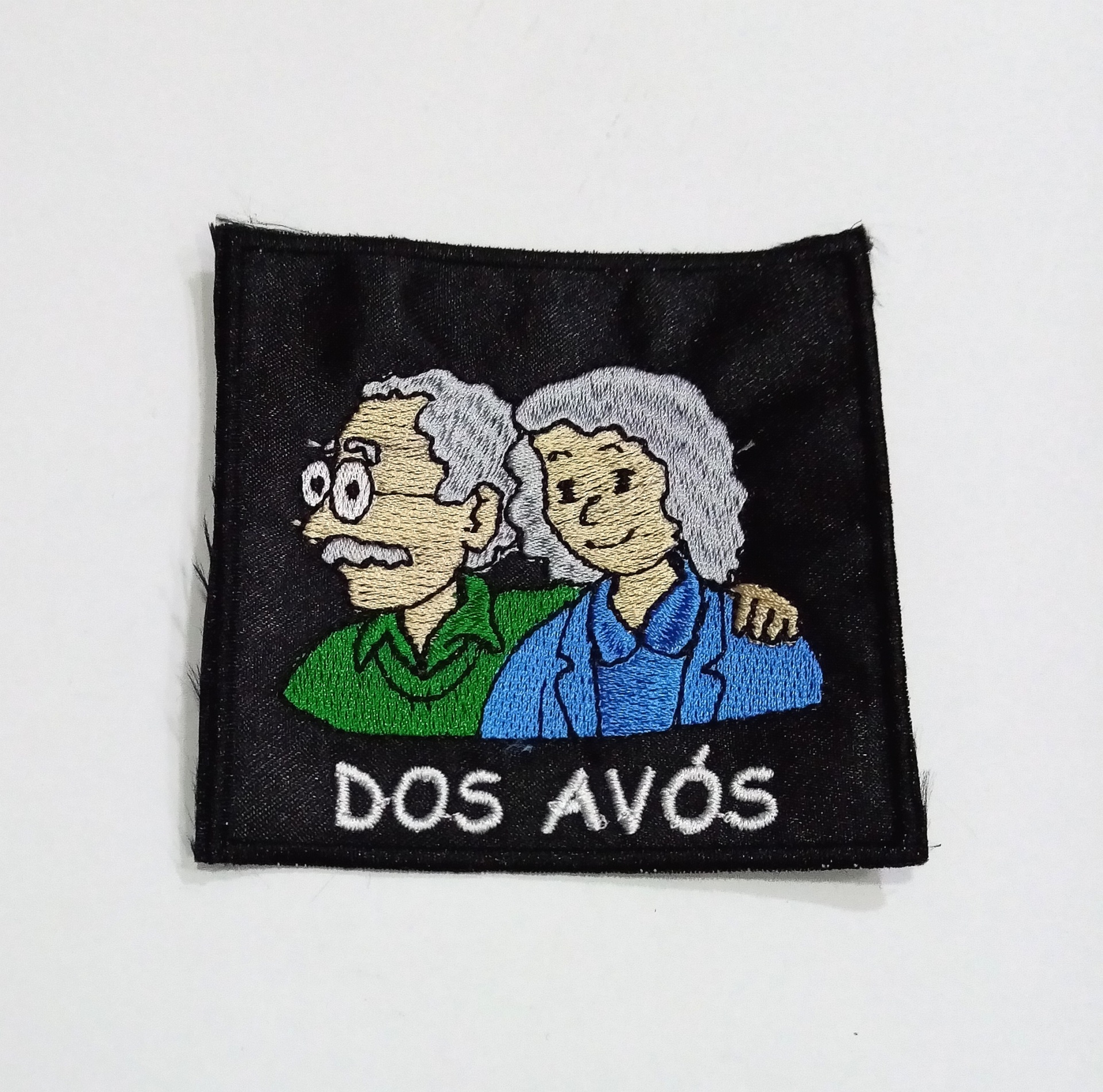 Emblema bordado dos avós em fundo preto, ideal para aplicar em capote de estudante universitário ou tapar buracos. Não é termocolante