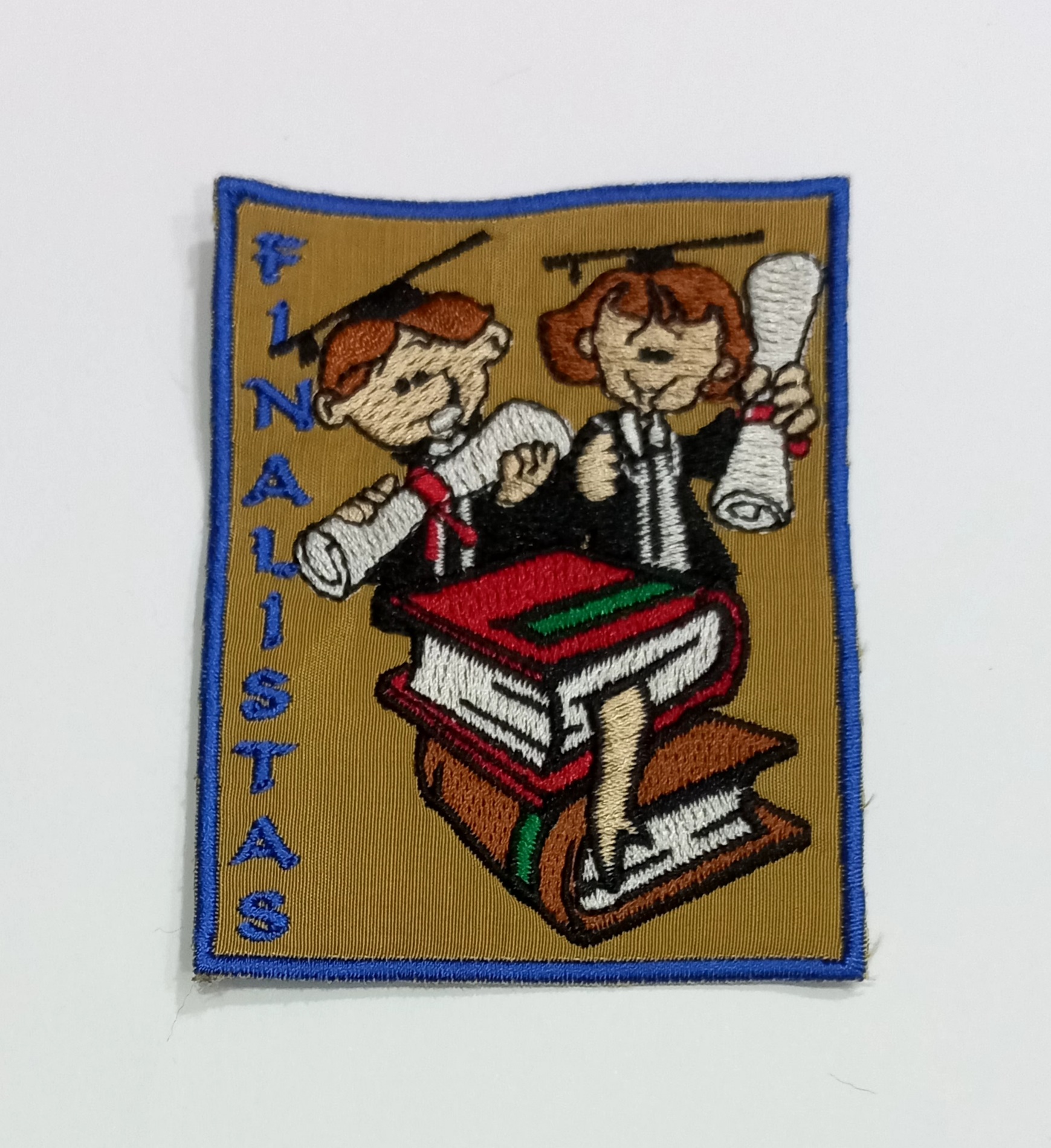 Emblema bordado com os finalistas em fundo amarelo , ideal para aplicar em capote de estudante universitário ou tapar buracos. Não é termocolante