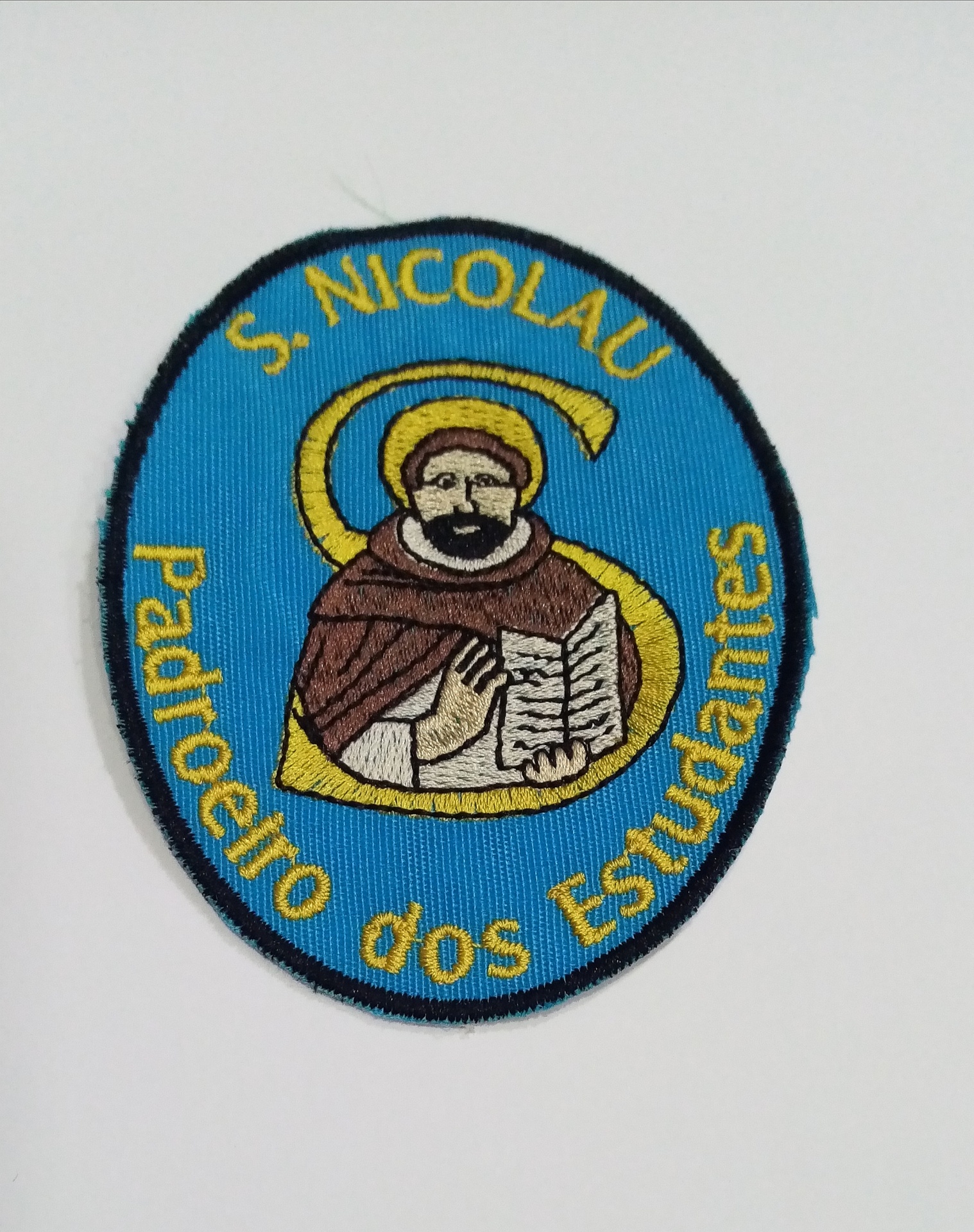 Emblema bordado com o São Nicolau Padroeiro doa Estudantes, ideal para aplicar em capote de estudante universitário ou tapar buracos. Não é termocolante