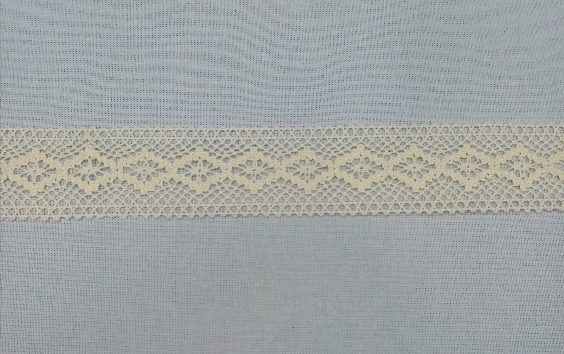 Entremeio de renda 41760 0,02 € Partilhar Adicionar Contactar Entremeio de Renda 100% algodão com zig-zag e rendilhado em bege 30mm Corte mínimo 20cm