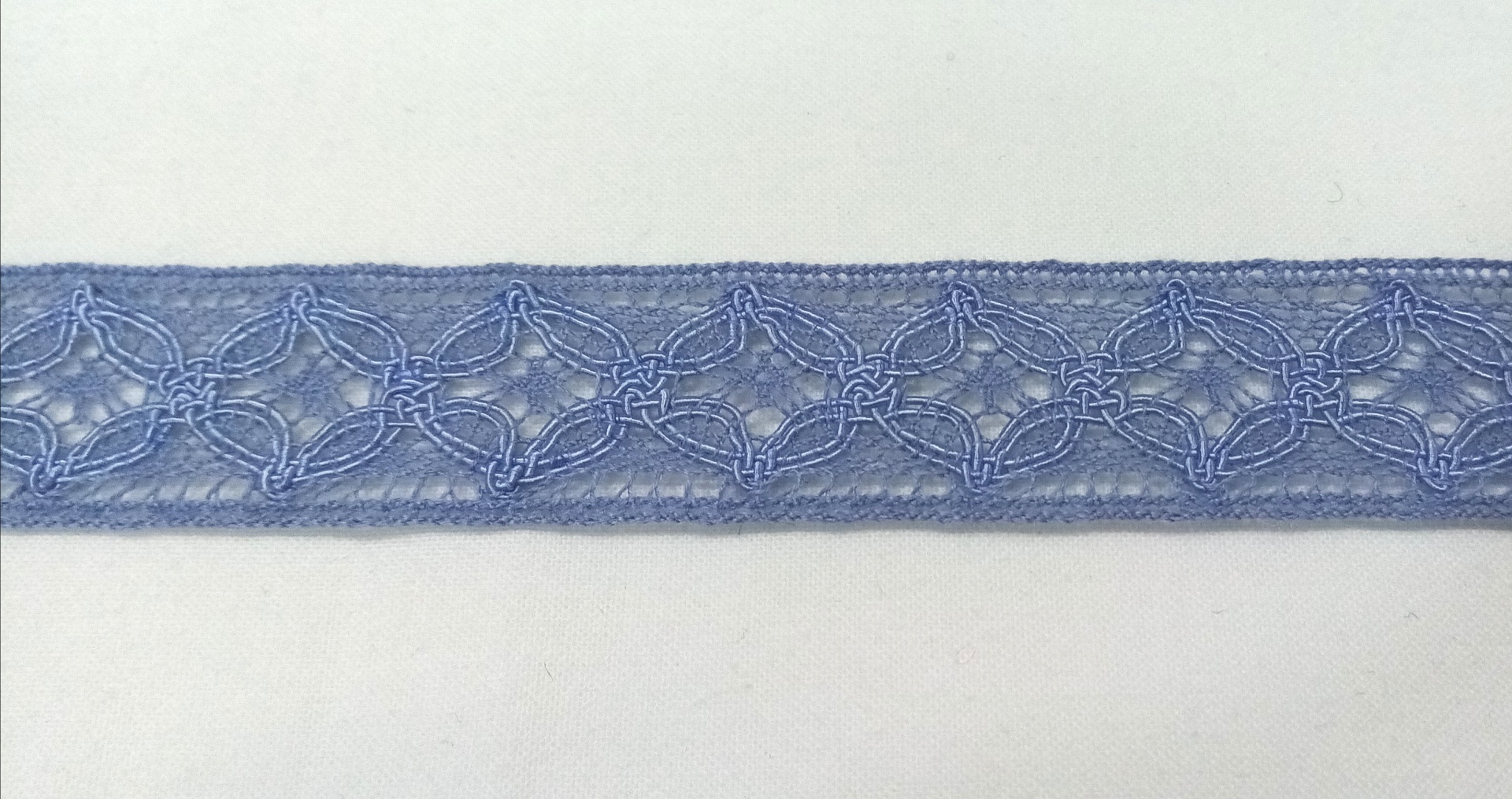 Entremeio de Renda F907066 0,02 € Partilhar Adicionar Contactar Entremeio de renda 100% algodão em azul 23mm Corte mínimo 20cm