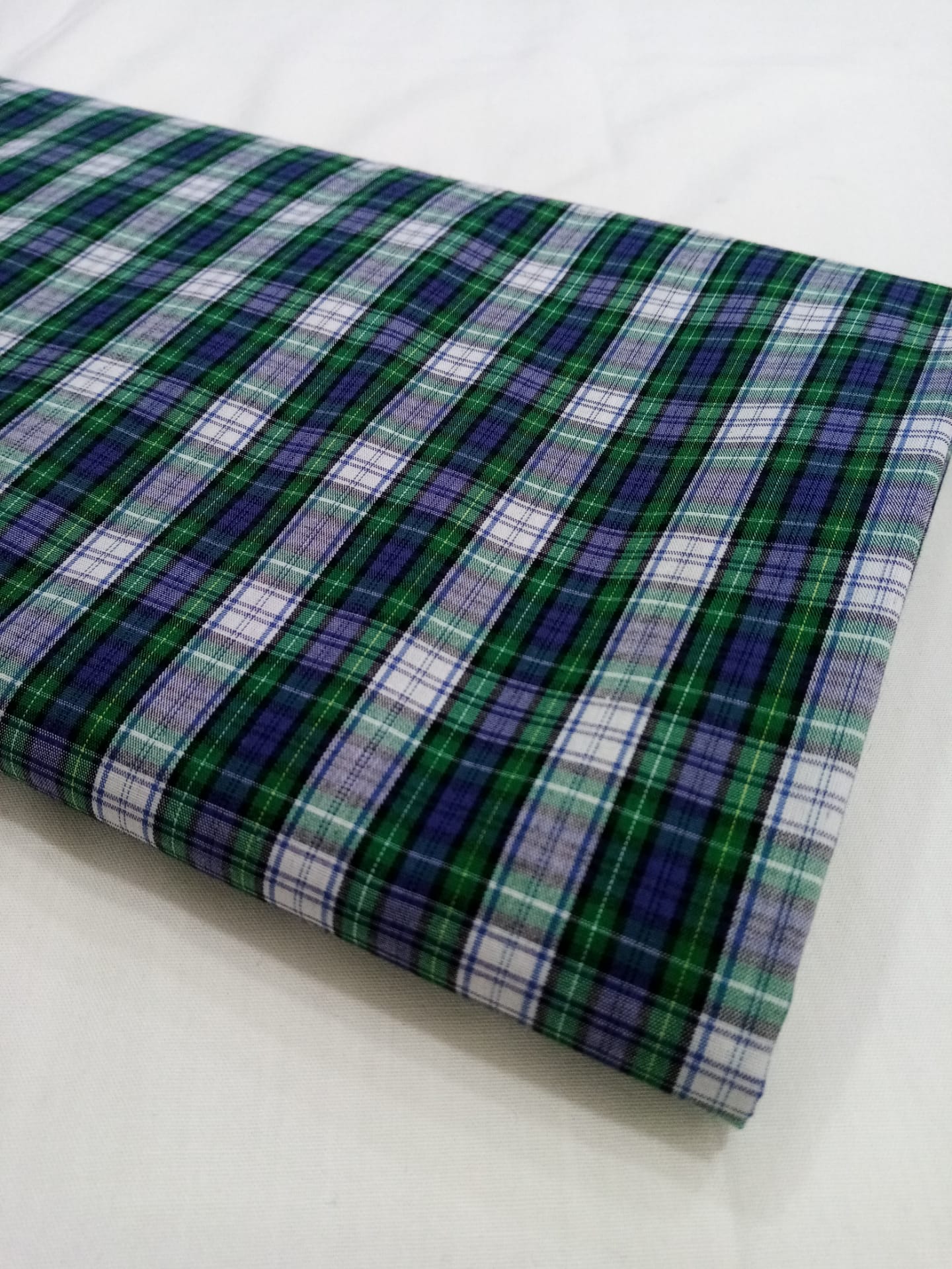 Cambraia escocesa verde e azul com quadrados pequenos