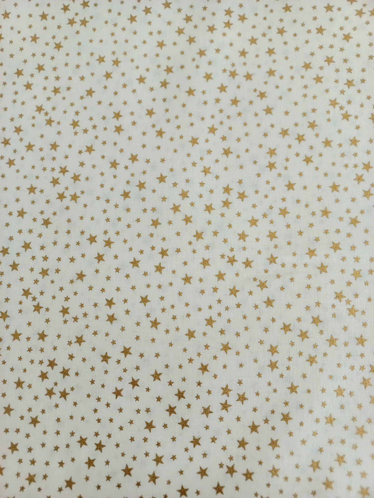 Popeline 100% algodão, com estrelas douradas com fundo pérola.