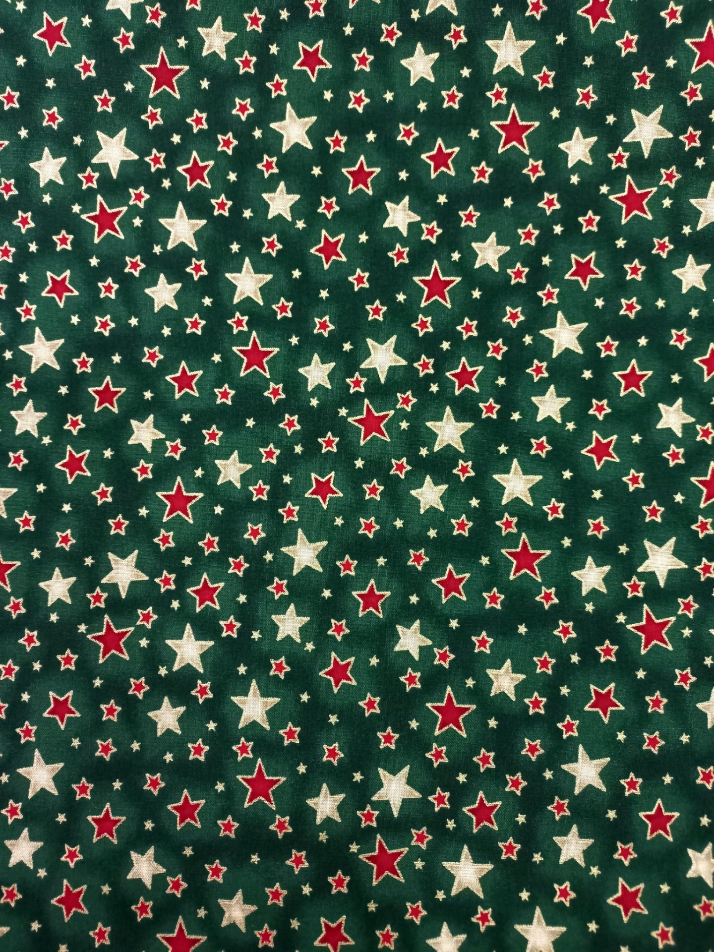 Popeline 100% algodão, com estrelas e estrelinhas em fundo verde.