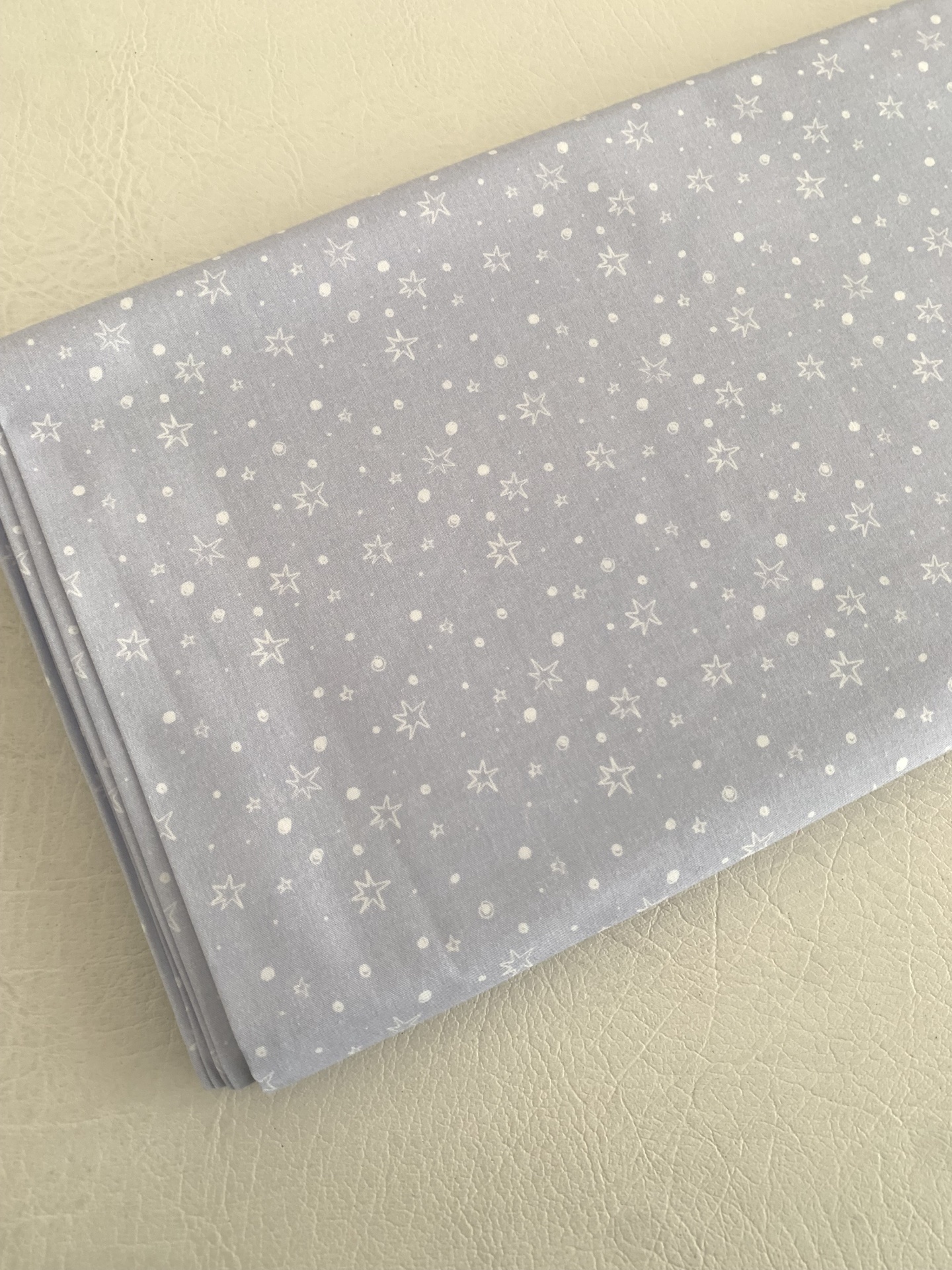 Tecido 100% Algodão , com estrelas em fundo cinza.
