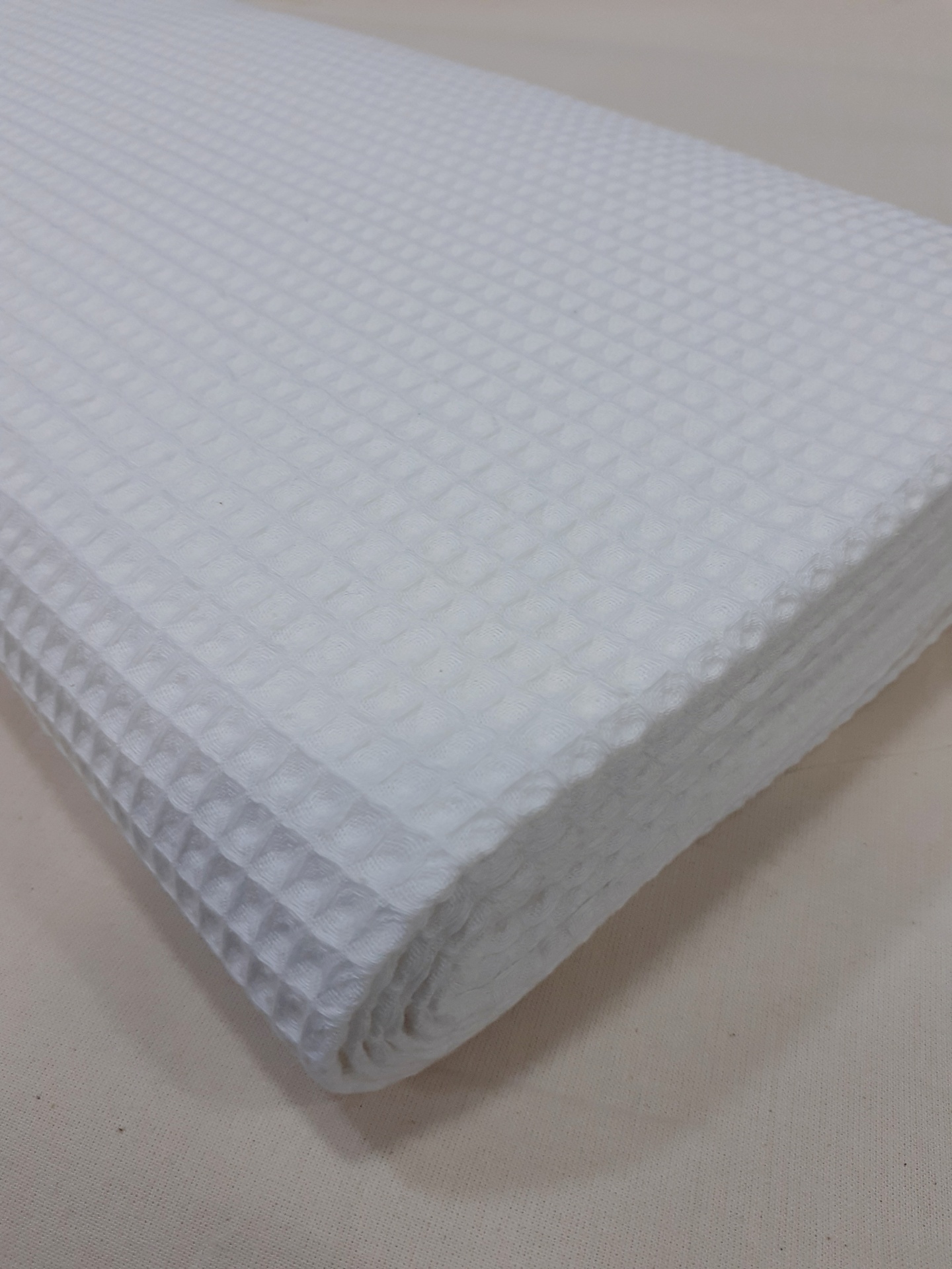 Tecido 100% algodão com favo de mel em branco na cor 1.