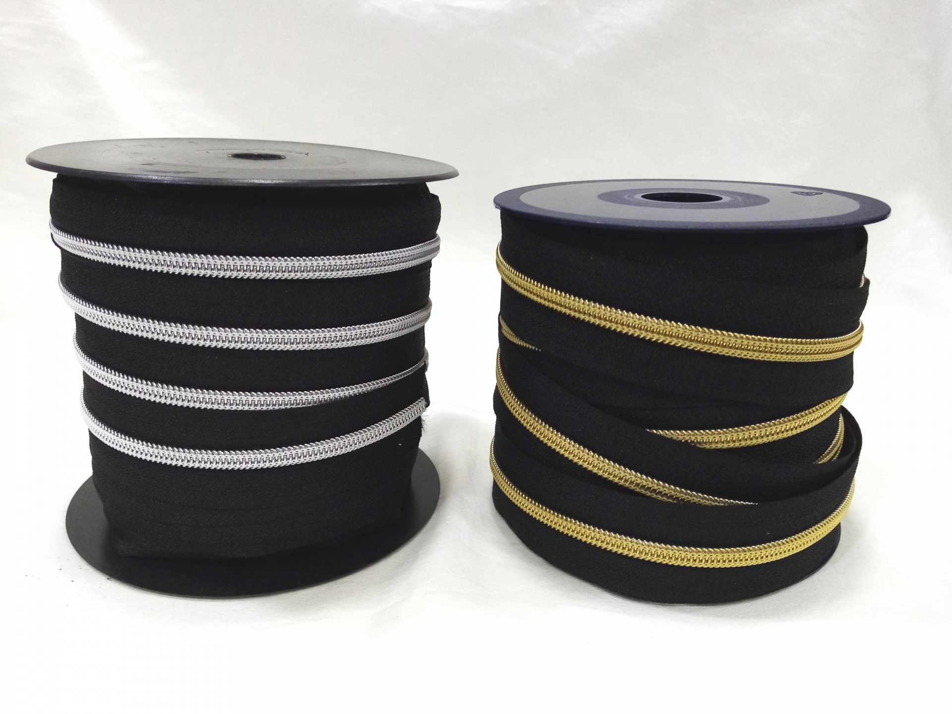 Fechos a Metro 967400 0,01 € Partilhar Cor Preto e Dourado Preto e Prata Adicionar Contactar 350 unidades em stock Fechos a metro de 5 mm, ideais para os seus trabalhos de costura Cursores vendidos à parte Corte mínimo 20cm