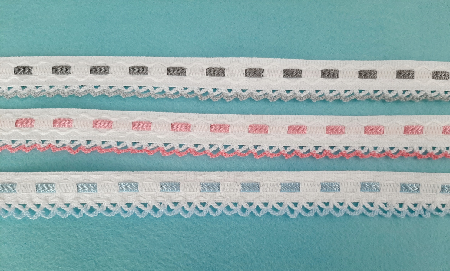 Fita com pontilha em renda 0,02 € Partilhar Cor Rosa Azul Cinza Adicionar Contactar Fita branca com passa fita de cor e pontilha em renda 20mm Corte mínimo de 20cm