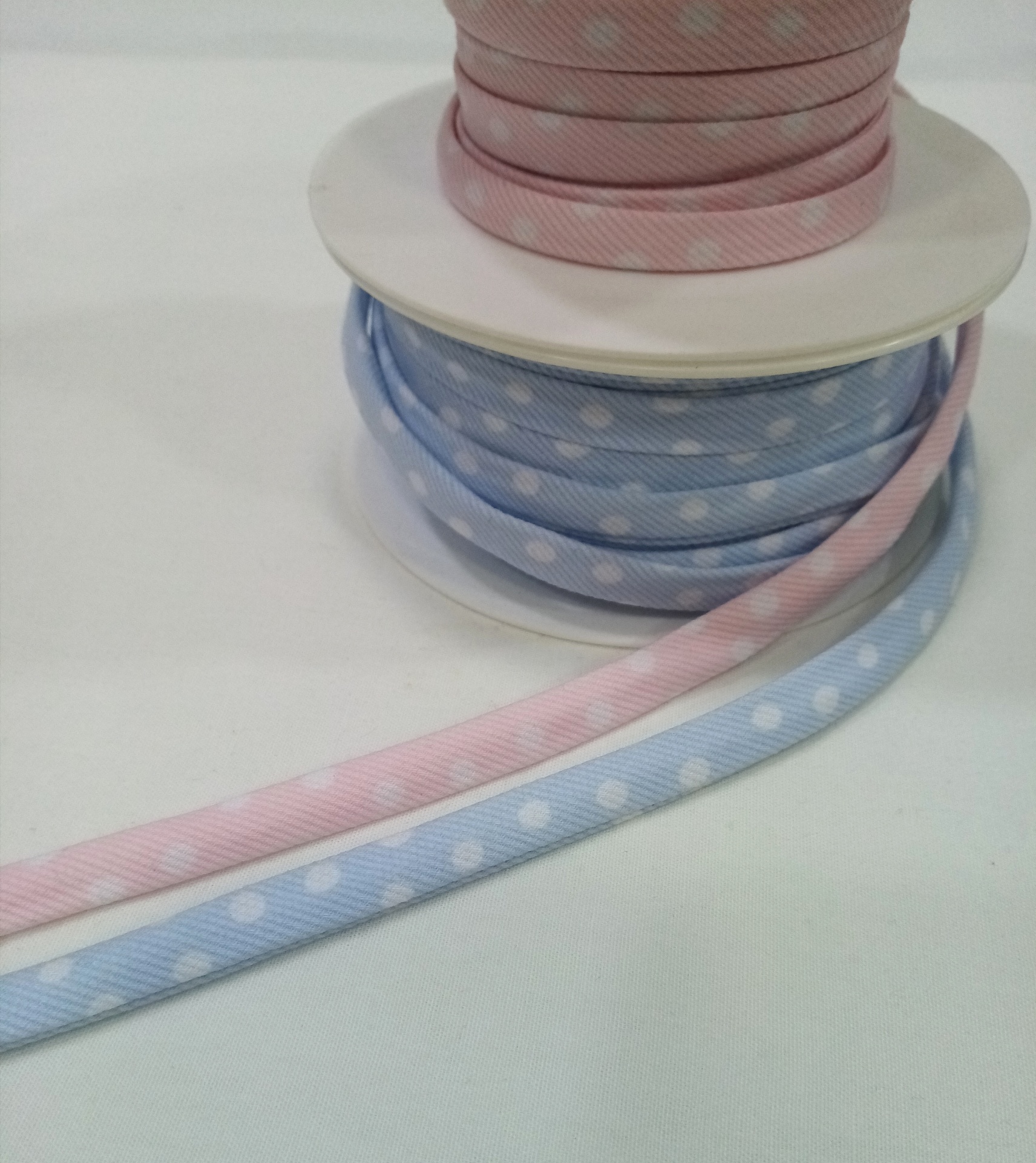 Fita para forrar bandoletes com bolinhas 0,01 € Partilhar Cor Rosa Azul Bebé Adicionar Contactar Fita 70% poliéster, 30%algodão para forrar bandoletes com bolinhas brancas em rosa ou azul bebé 10mm