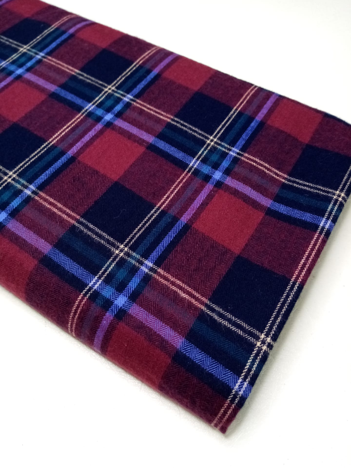 Flanela escocesa em bordeaux e azul 0,07 € Partilhar Adicionar Contactar Tecido de Flanela, 100% algodão com padrão escocês em bordeaux e azul. 1.50m de largo Corte mínimo 20cm