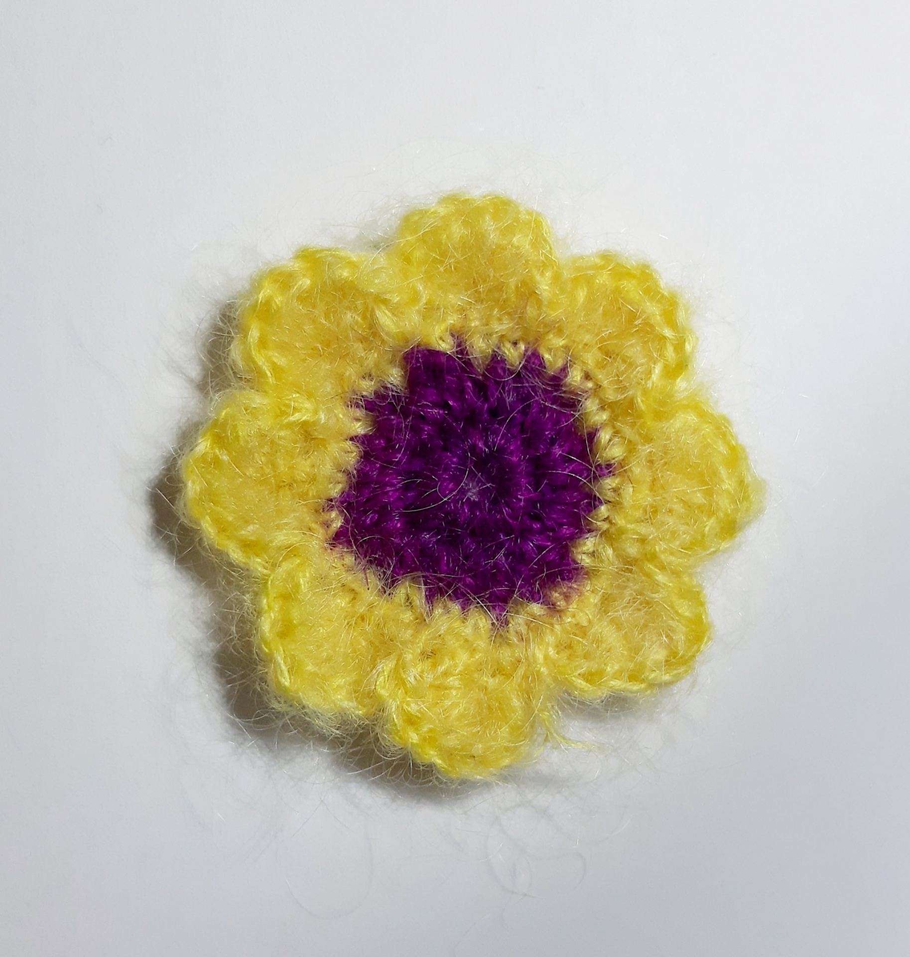 Flor de lã amarela 0,55 € Partilhar Adicionar Contactar Aplicação em lã de uma flor em amarelo e roxo 5cm de diâmetro