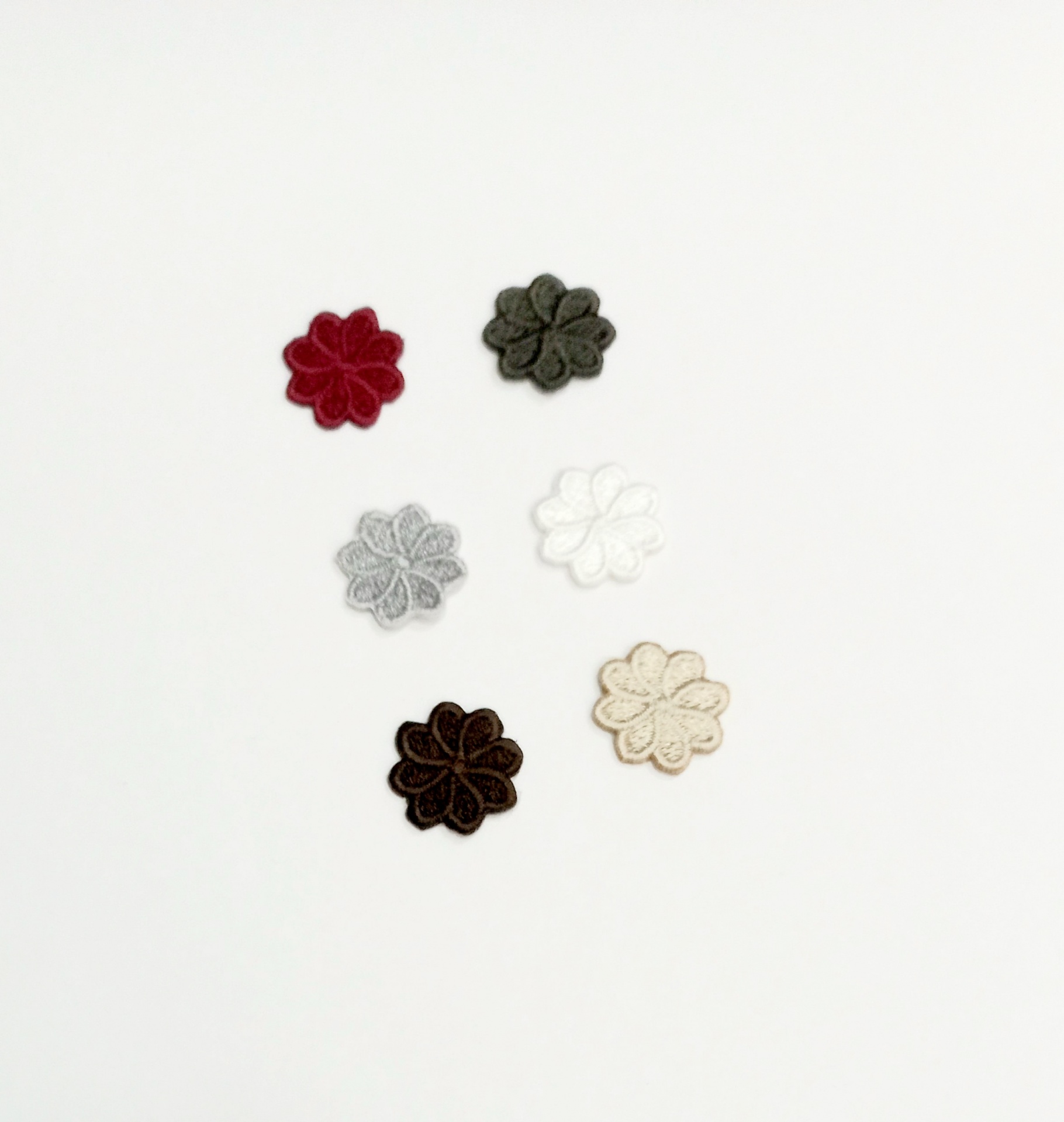 Flores de Inverno pequenas 0,75 € Partilhar Cor Castanho Cinza Verde Bordeaux Pérola Branco Adicionar Contactar 6 unidades em stock Aplicação termoadesiva bordada 18mm de diâmetro
