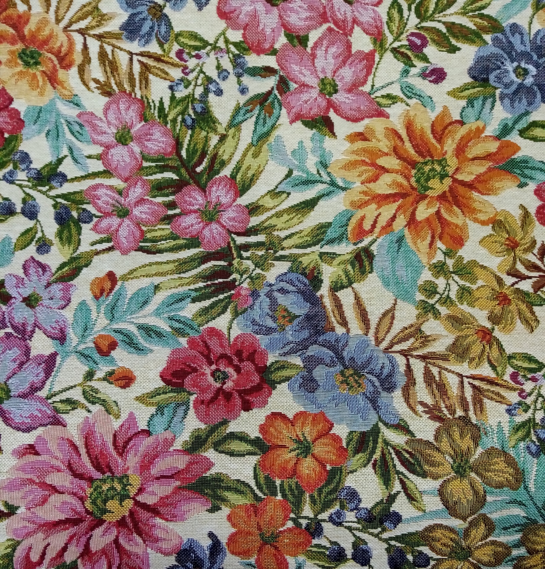 Flores de Primavera em fundo creme 0,19 € Partilhar Adicionar Contactar 155 unidades em stock Tecido Gobelin 45% poliéster, 55% algodão com flores coloridas em fundo creme. 2.80m de largo Ideal para confeção, toalhas de mesa, almofadas, caminhos de mesa e tapeçaria. Corte mínimo 20cm