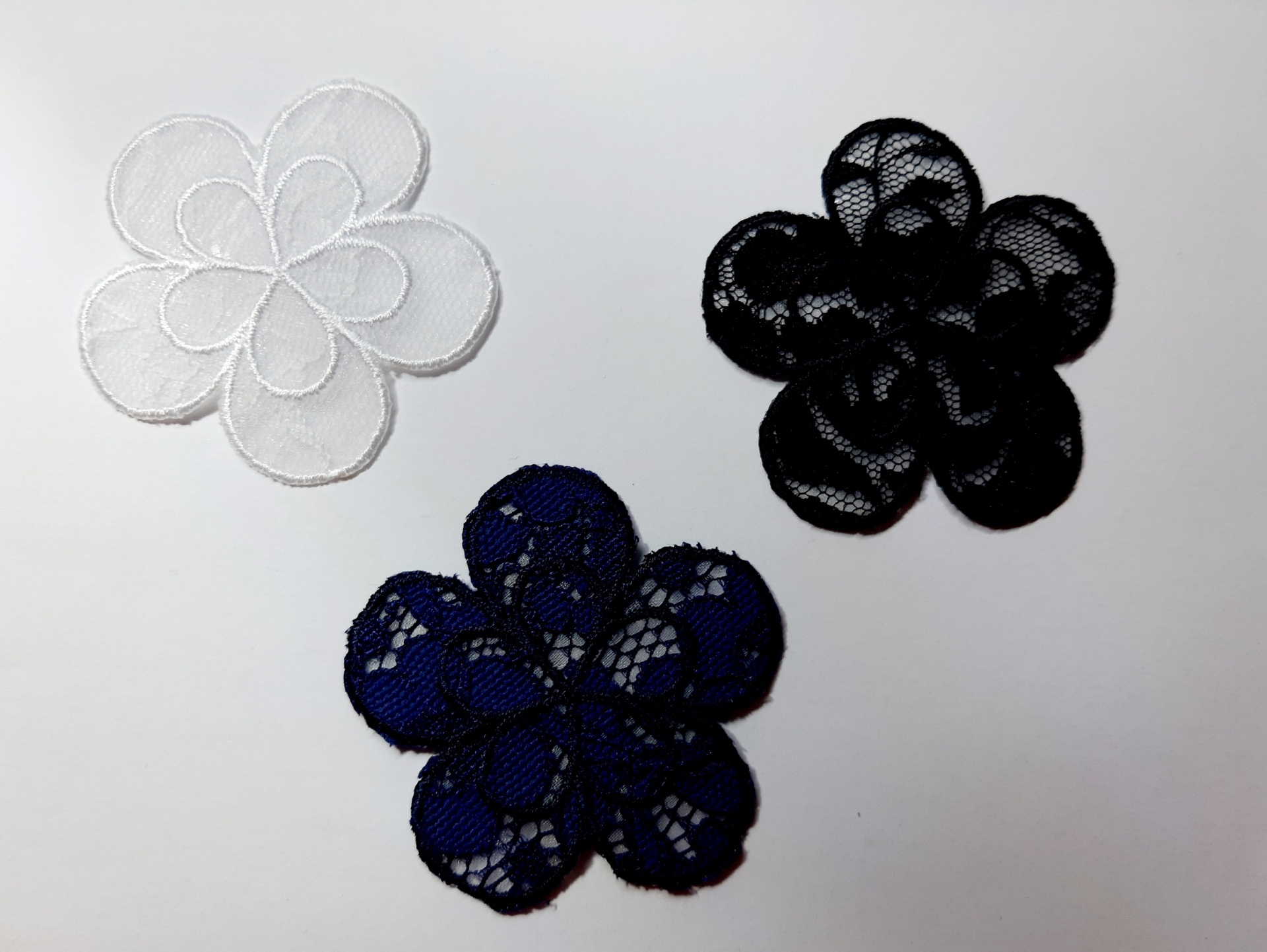 Flores grandes em renda 2,20 € Partilhar Cor Branco Azul escruro Preto Adicionar Contactar 2 unidades em stock Aplicação termoadesiva de flores em renda 5.5cm de diâmetro Tags RemendosTapa buracosdecoracão