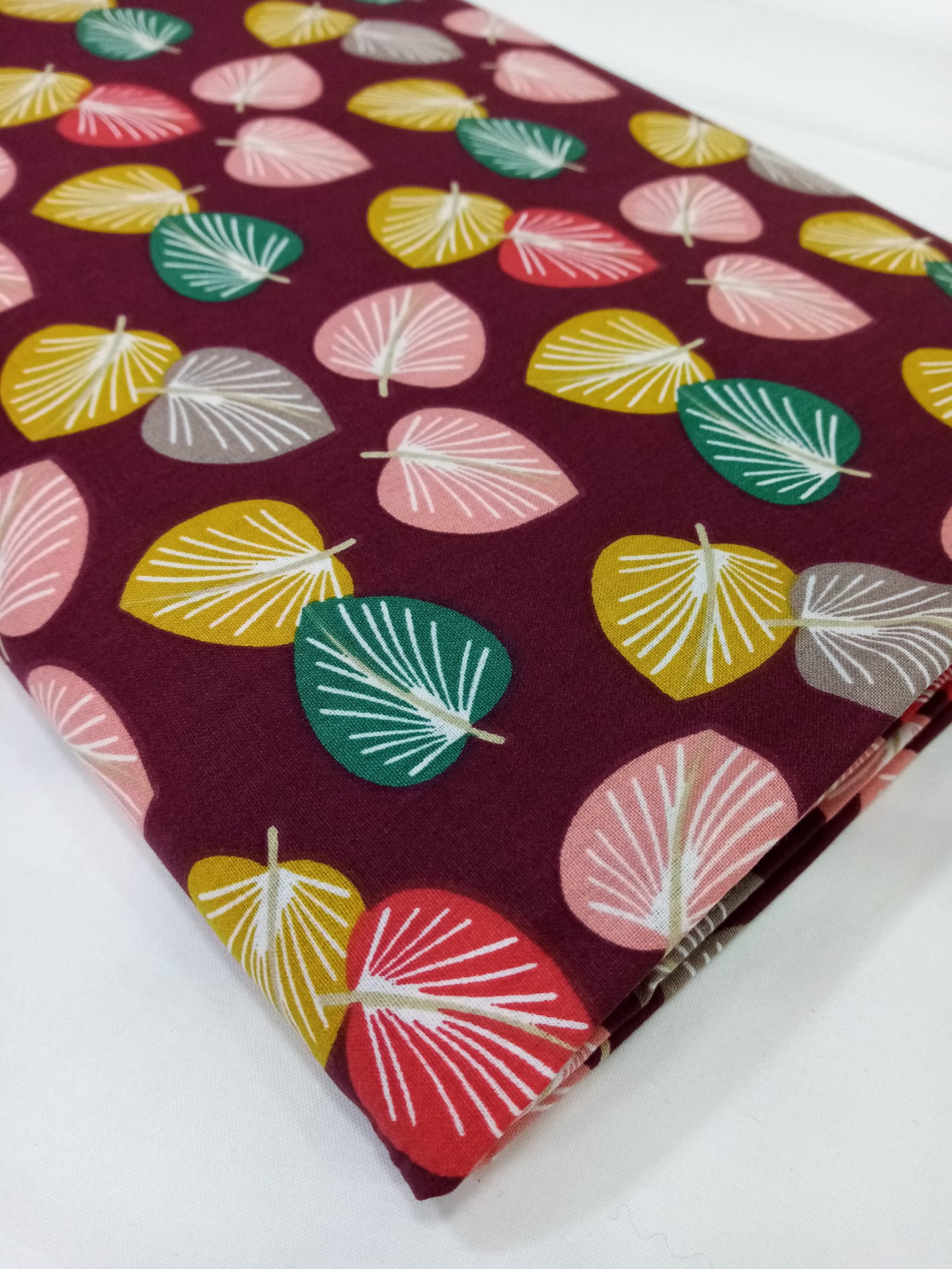 Foliage - Leaves 0,12 € Partilhar Adicionar Contactar Tecido Domotex 100% algodão com folhas coloridas em fundo bordeaux 1.50m de largo Corte mínimo 20cm Tags Outono