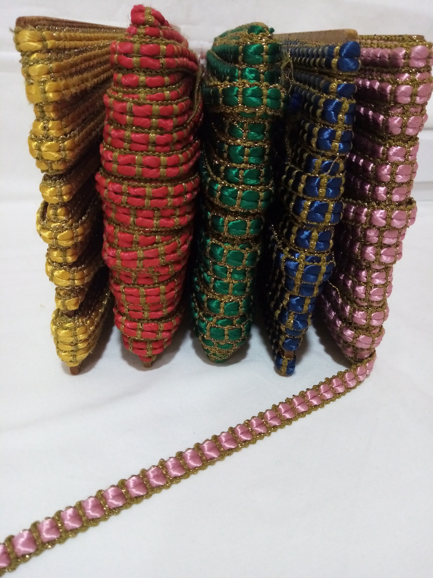 Galão 102 0,01 € Partilhar Cor Rosa Velho Azul Vermelho Verde Amarelo Adicionar Contactar 1500 unidades em stock Galão em ouro velho e fita em várias cores 10mm Ideal para tapar costuras. Corte mínimo 20cm