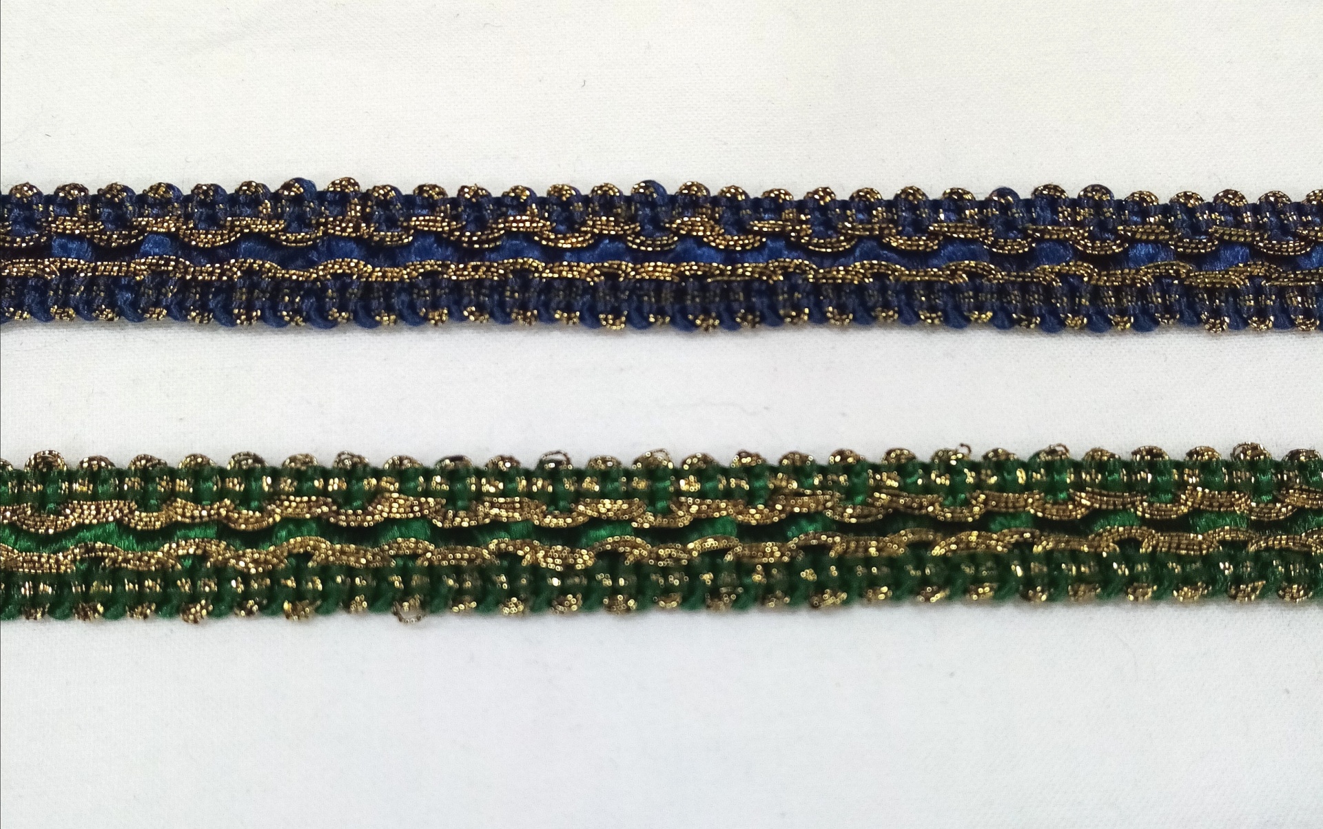 Galão 1191 0,01 € Partilhar Cor Verde e dourado Azul e dourado Adicionar Contactar 500 unidades em stock Galão várias cores com dourado 15mm Ideal para tapar costuras. Corte mínimo 20cm