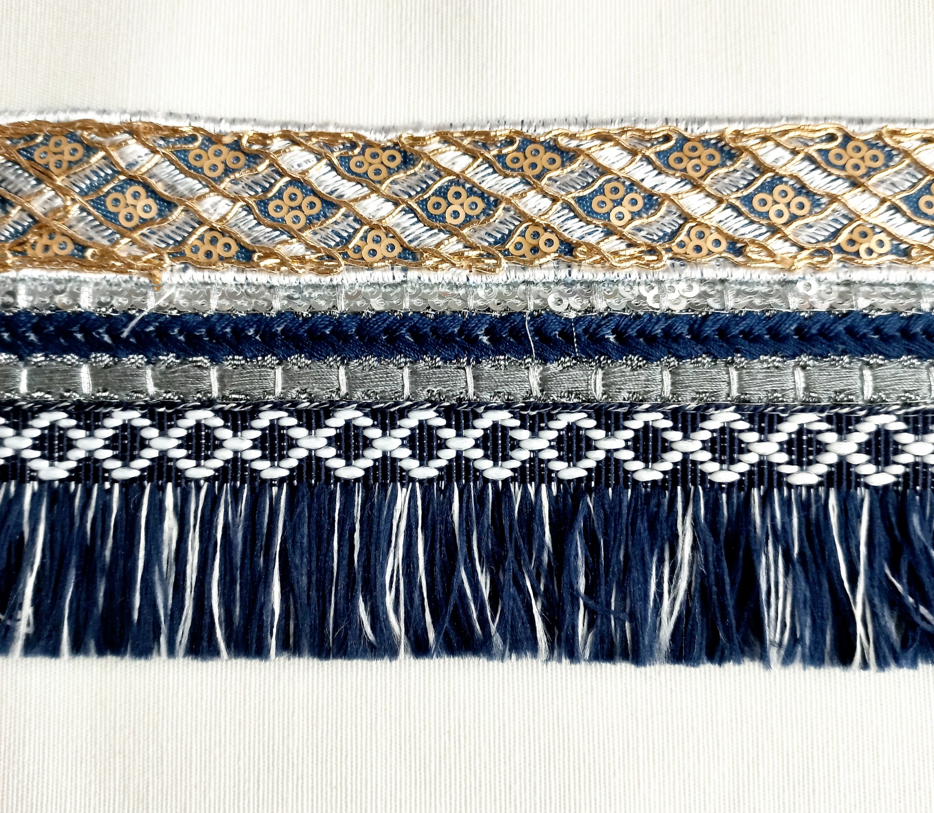 Galão dourado com franja azul 0,09 € Partilhar Adicionar Contactar 250 unidades em stock Galão dourado com franja azul. 75mm de largo. Corte mínimo 20