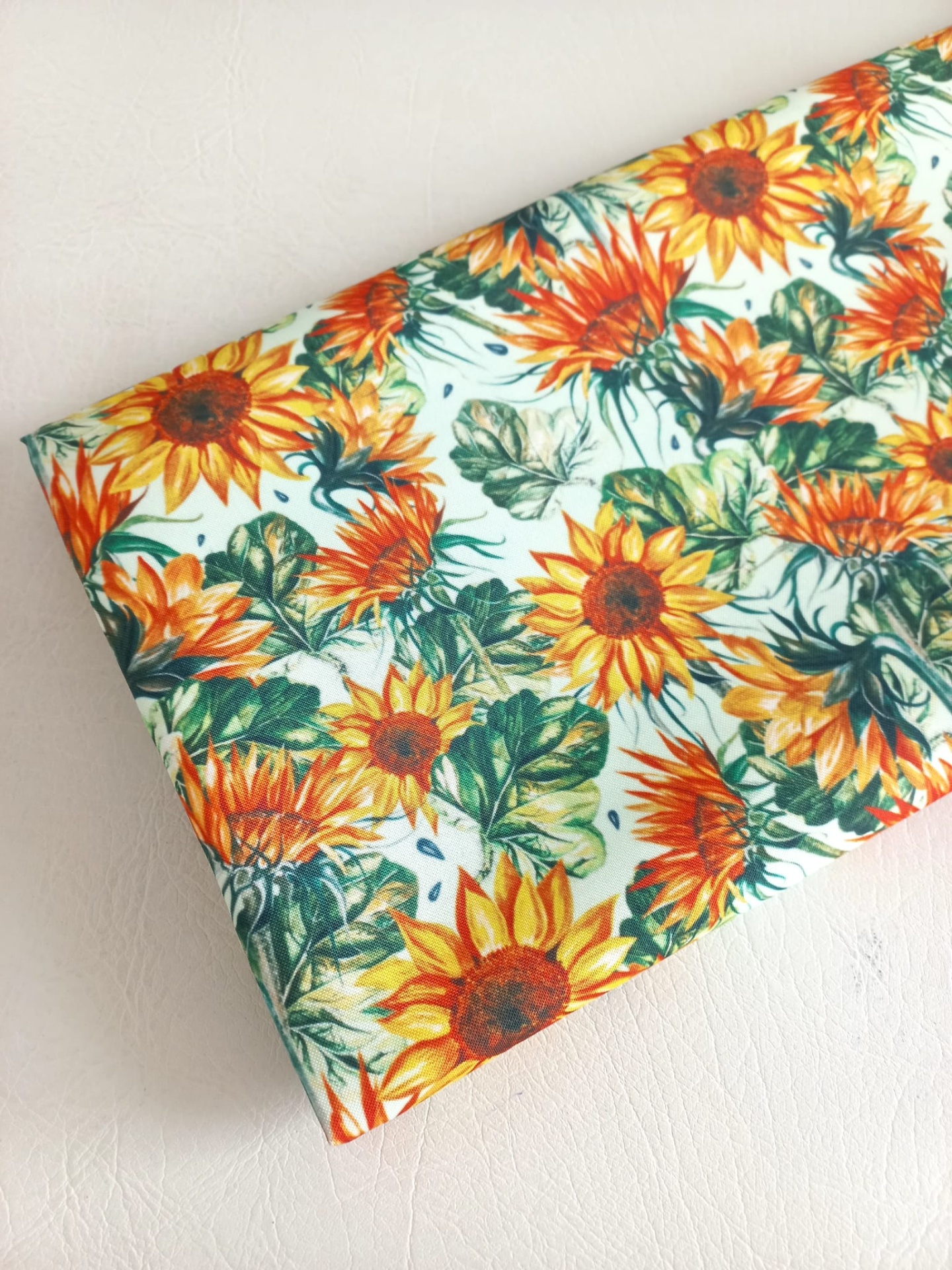 Girassóis - F13 0,11 € Partilhar Adicionar Contactar 320 unidades em stock Tecido Canva 100% poliéster, com girassóis em fundo bege. 1.50m de largo Ideal para ecobags, cortinados, aventais, toalhas de mesa, caminhos de mesa, individuais, almofadas e outros artigos de decoração. Corte mínimo 20cm