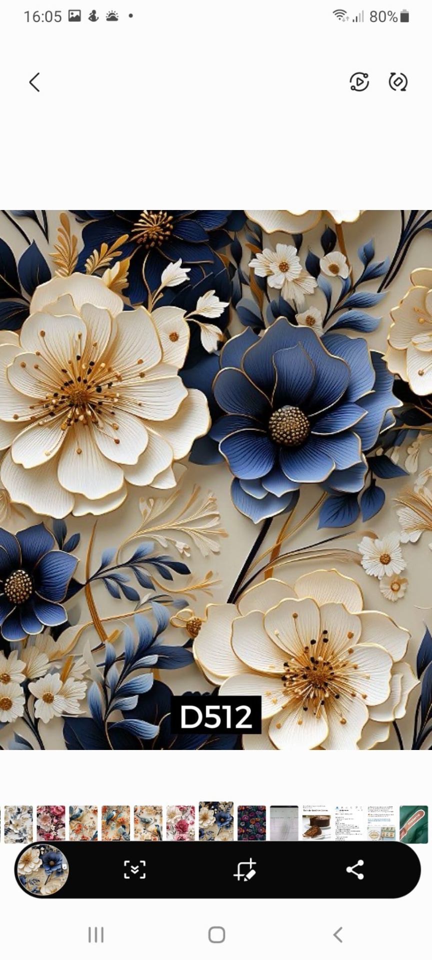 Tricoline Fabricart 100% algodão com motivos florais em 3D em tons de azul marinho.