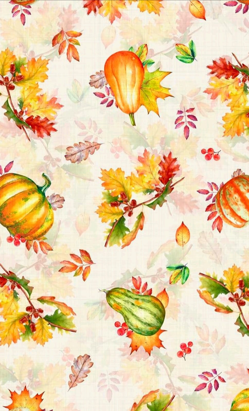 Half Panamá 100% algodão com abóboras e folhastec em fundo pérola.