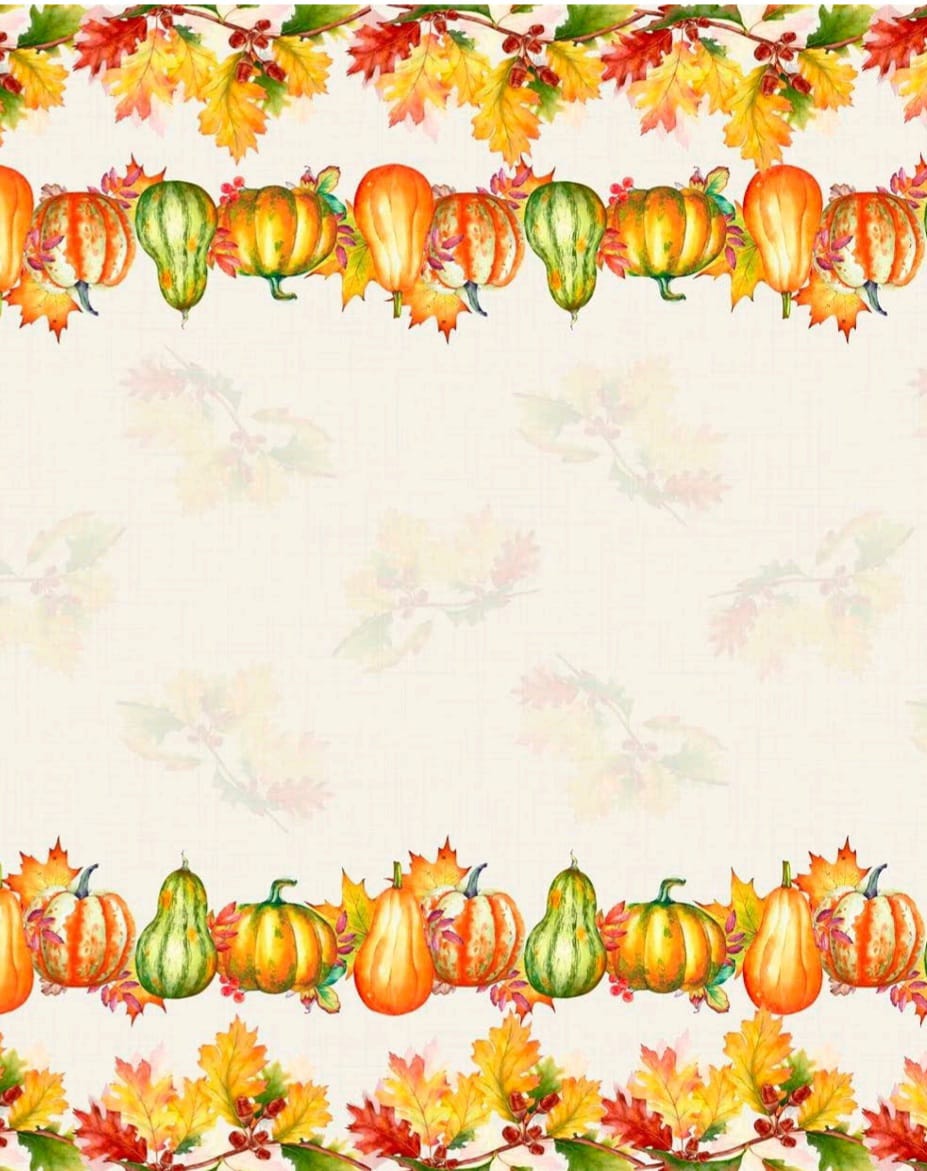 Half Panamá 100% algodão com abóboras e folhas em fundo pérola.
