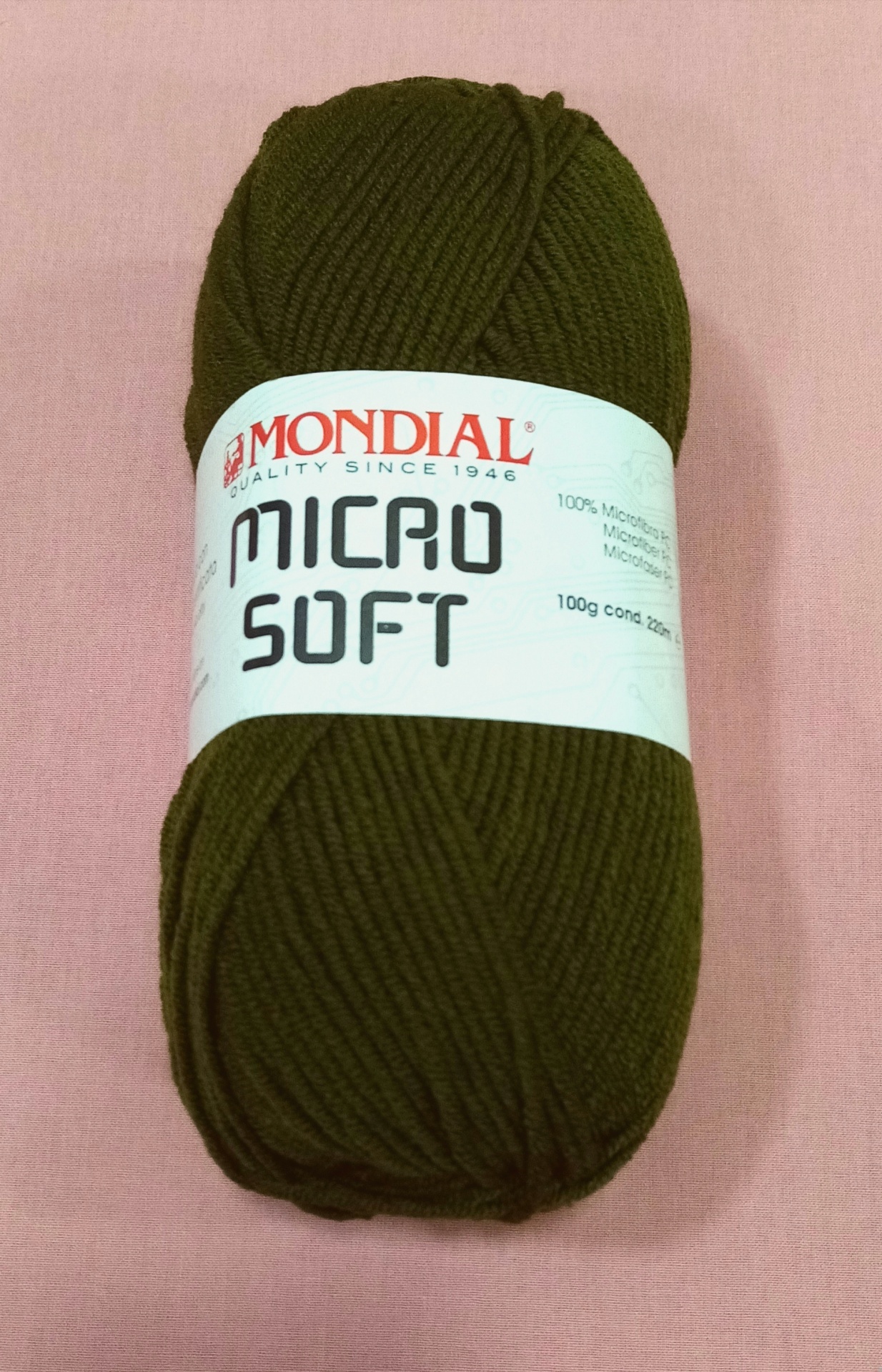 Lã Mondial Micro Soft 191 2,76 € Partilhar Adicionar Contactar 1 unidades em stock Lã Mondial Micro Soft em verde azeitona, cor 191 100% Microfibra acrílica 100gr, 220m Agulhas 4.5 ou 5.5