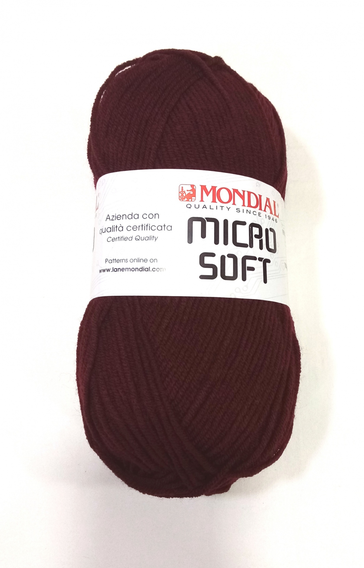 Lã Mondial Micro Soft 279 2,76 € Partilhar Adicionar Contactar 5 unidades em stock Lã Mondial Micro Soft em bordeaux, cor 279 100% Microfibra acrílica 100gr, 220m Agulhas 4.5 ou 5.5