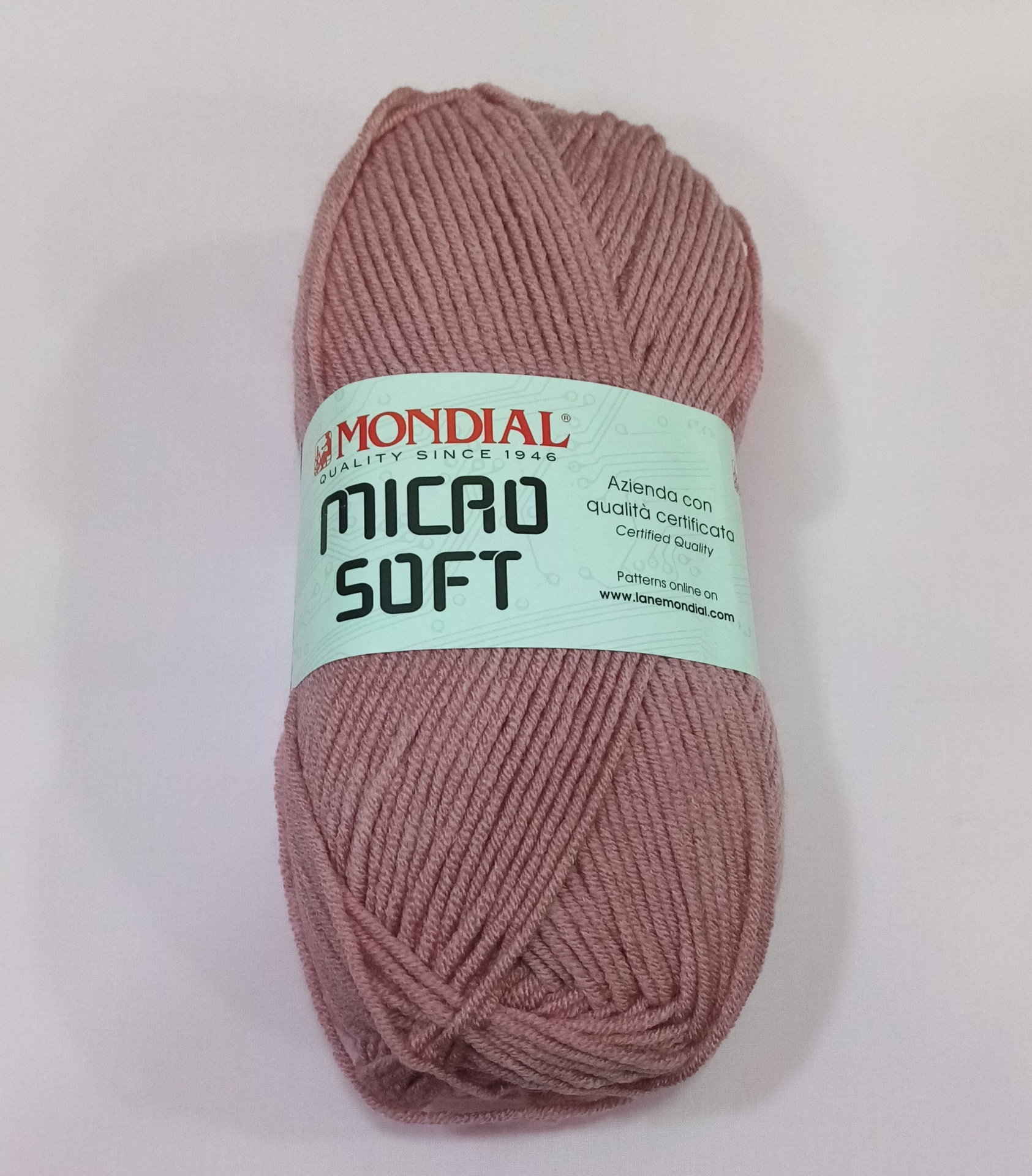 Lã Mondial Micro Soft 298 2,76 € Partilhar O produto encontra-se sem stock. Lã Mondial Micro Soft em rosa velho, cor 298 100% Microfibra acrílica 100gr, 220m Agulhas 4.5 ou 5.5
